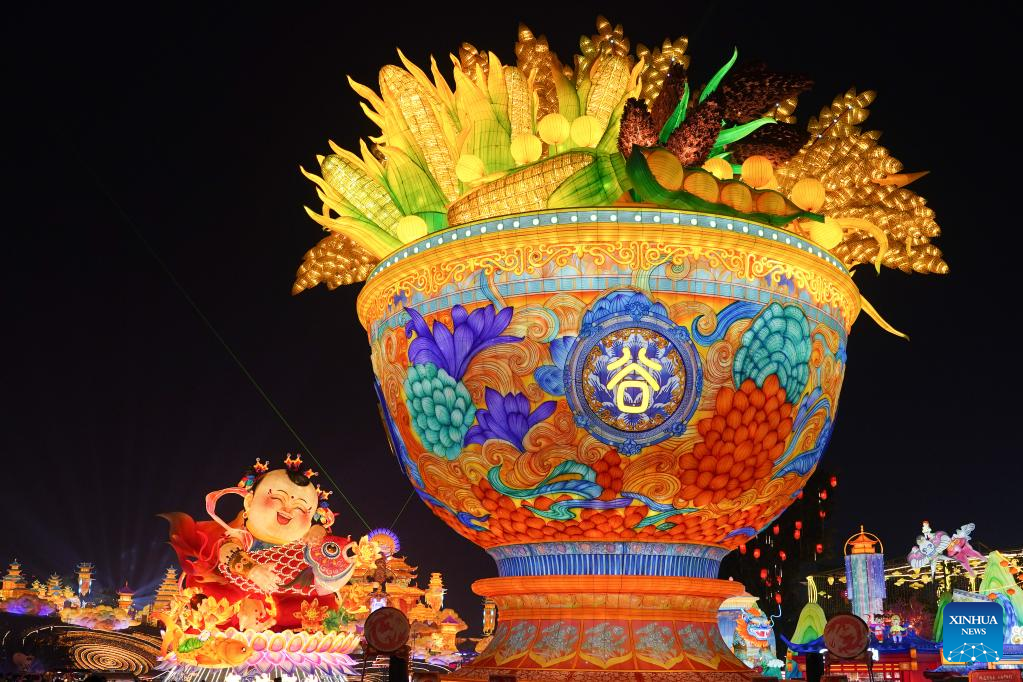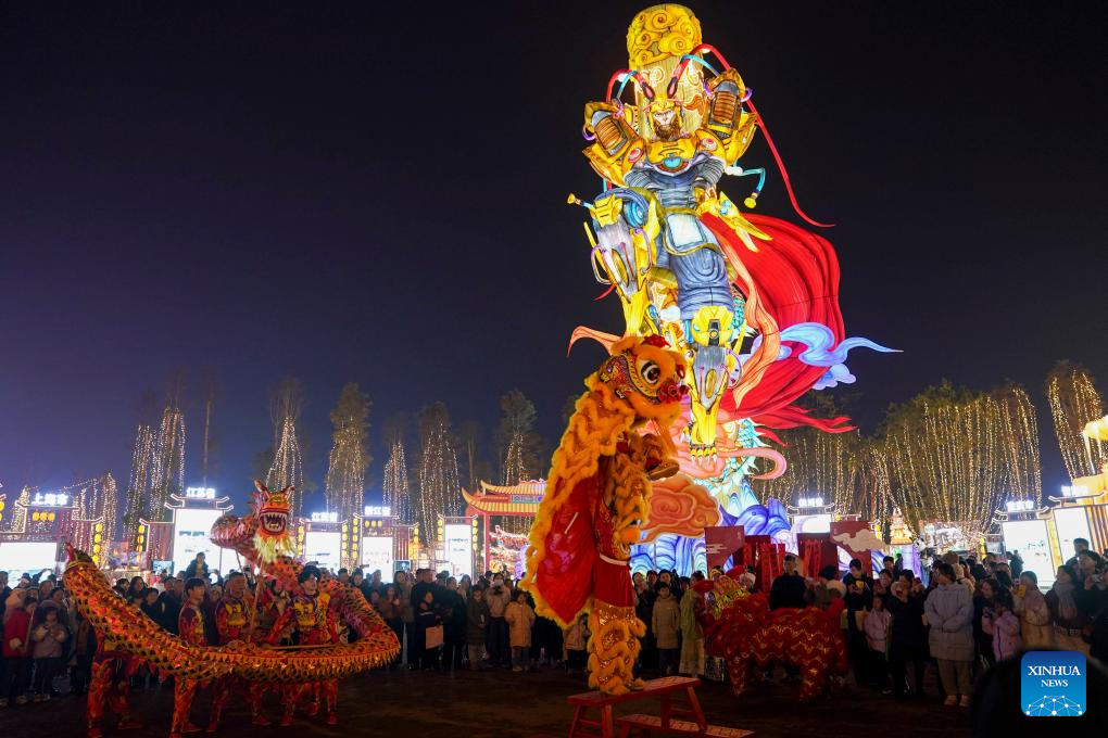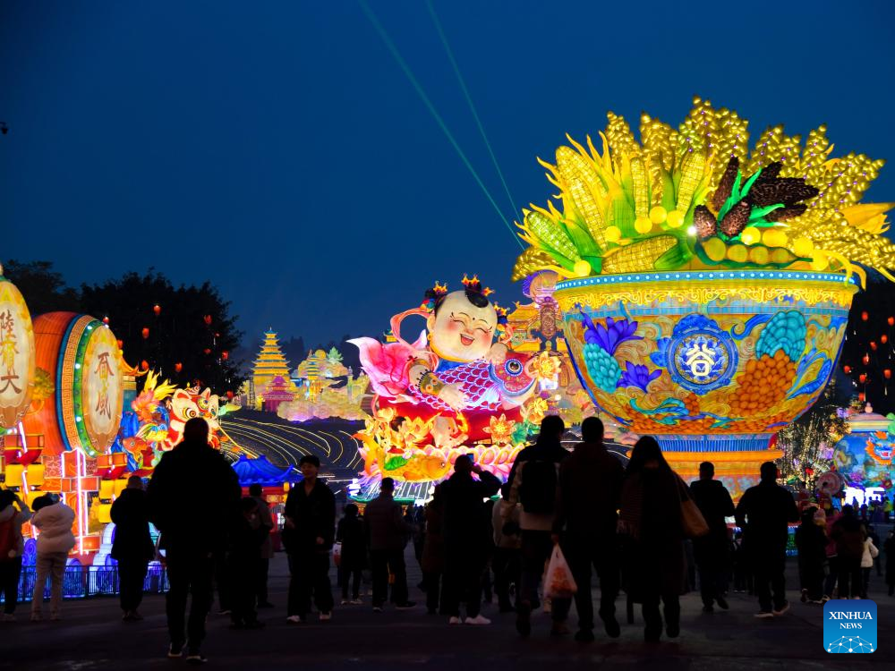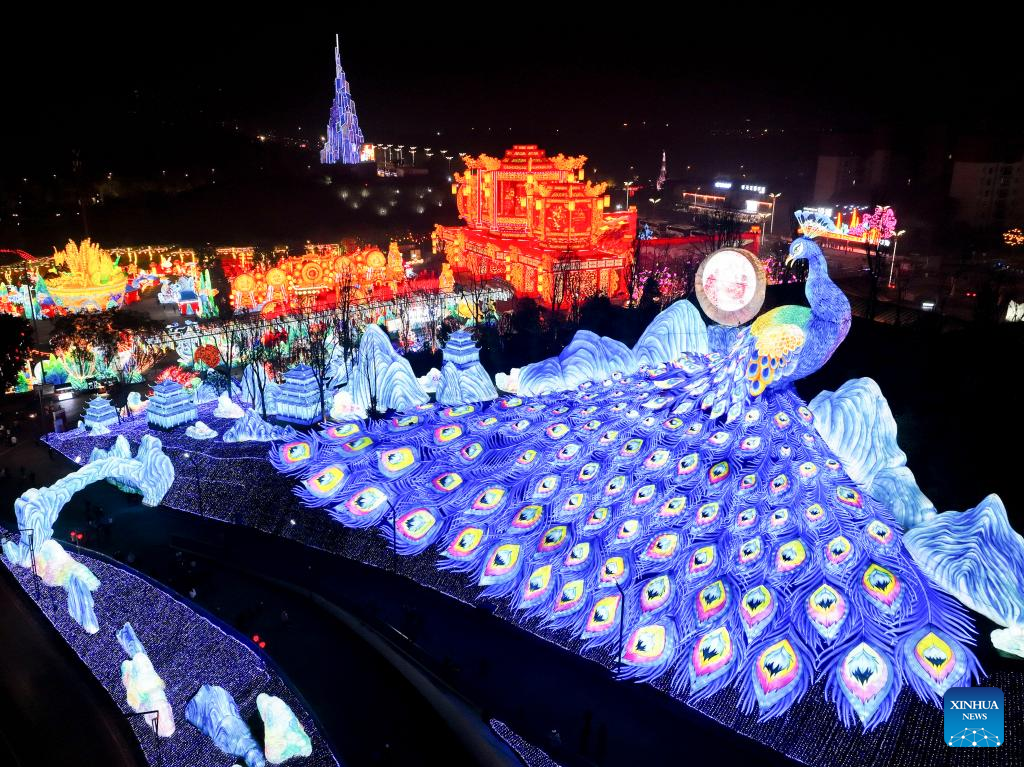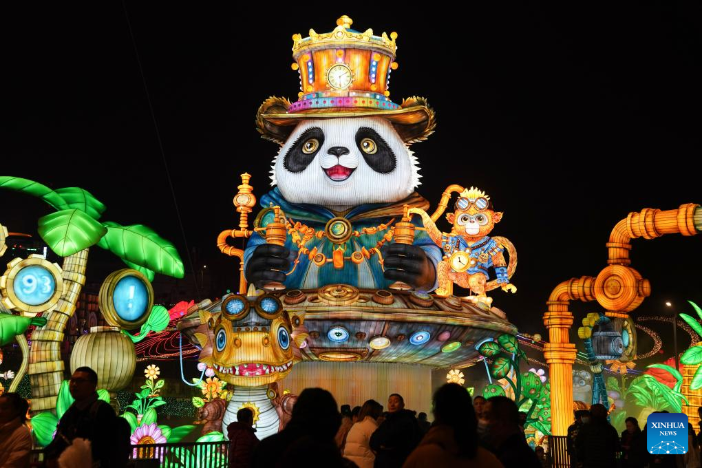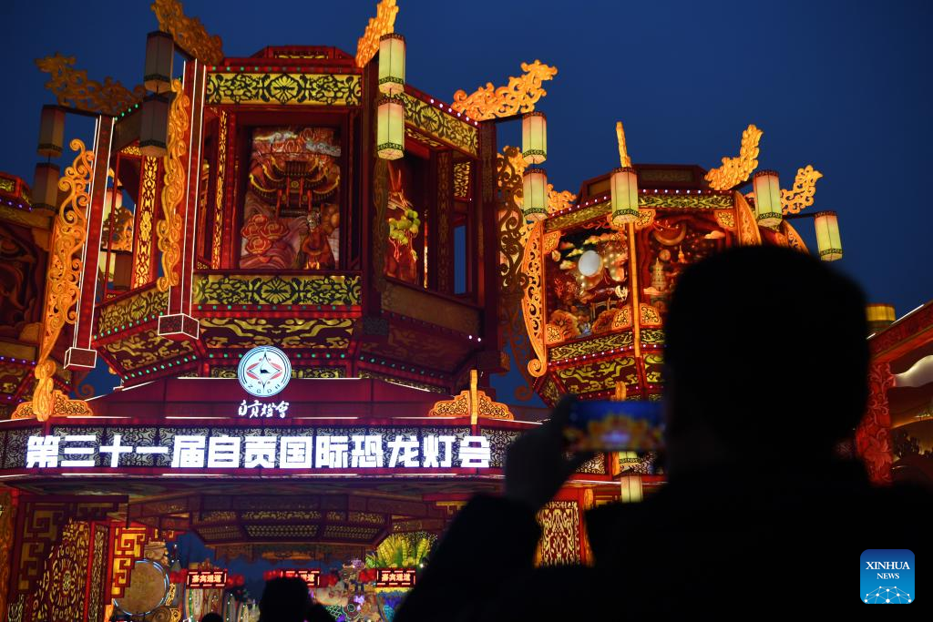 Lanterns are seen during the 31st Zigong International Dinosaur Lantern Show in Zigong, southwest China's Sichuan Province, Jan. 17, 2025. The 31st Zigong International Dinosaur Lantern Show kicked off here on Friday. This year's lantern show features 12 groups of super-large light sets, seven groups of large light sets and more than 200 groups of small and medium-sized light sets. The scale of the lantern displays has set a new record in the history of the Zigong International Dinosaur Lantern Show. (Xinhua/Xu Bingjie)