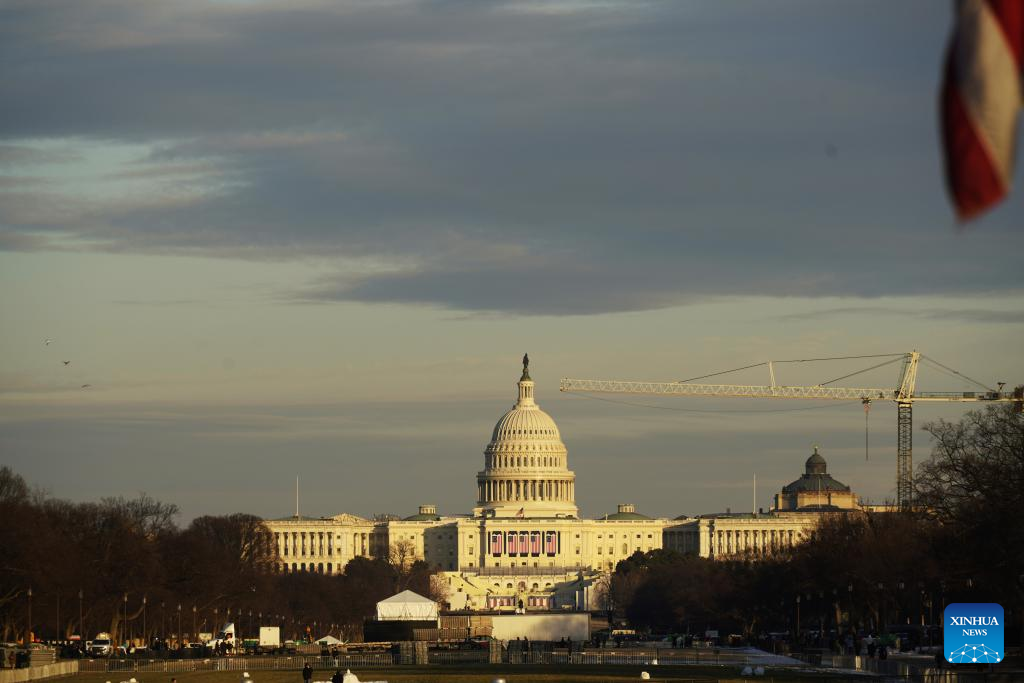 This photo taken on Jan. 18, 2025 shows the U.S. Capitol building in Washington, D.C., the United States. President-elect Donald Trump announced on social media on Friday that his inauguration is expected to be moved indoors Monday due to freezing weather projected in Washington, D.C.