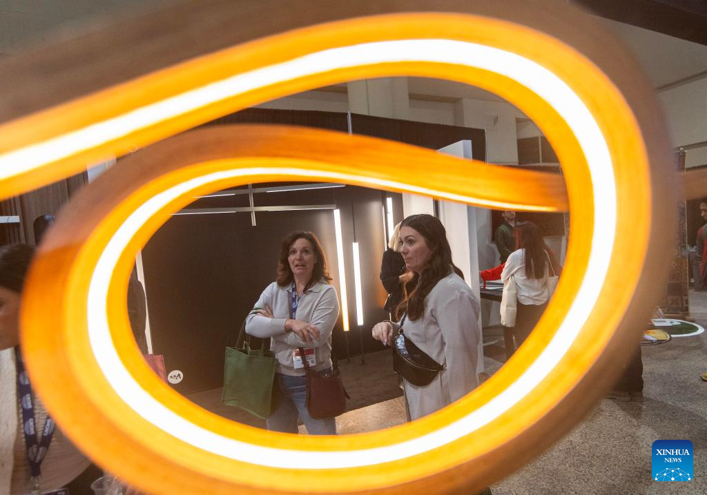 People look at a lamp during the 2025 Interior Design Show in Toronto, Canada, on Jan. 23, 2025. This annual event kicked off here on Thursday and will last until Jan. 26. (Photo by Zou Zheng/Xinhua)