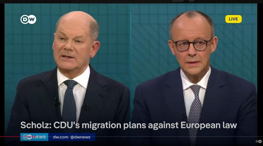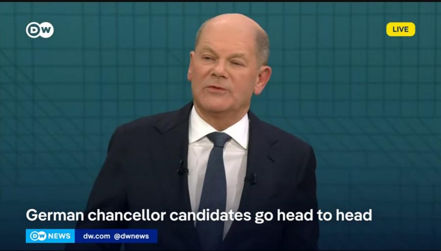 Scholz and Friedrich Merz, leader of the opposition Christian Democratic Union (CDU), engaged in the first televised debate ahead of Bundestag elections on Feb. 23.