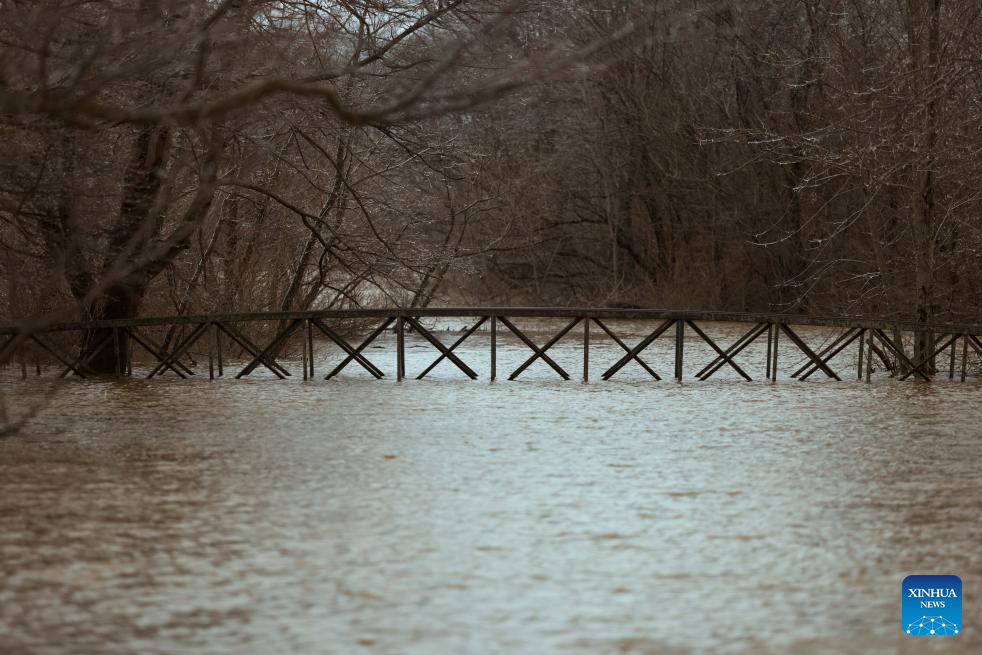 A flooded river is seen in Hart County, Kentucky, the United States, Feb. 16, 2025. (Photo by Austin Anthony/Xinhua)