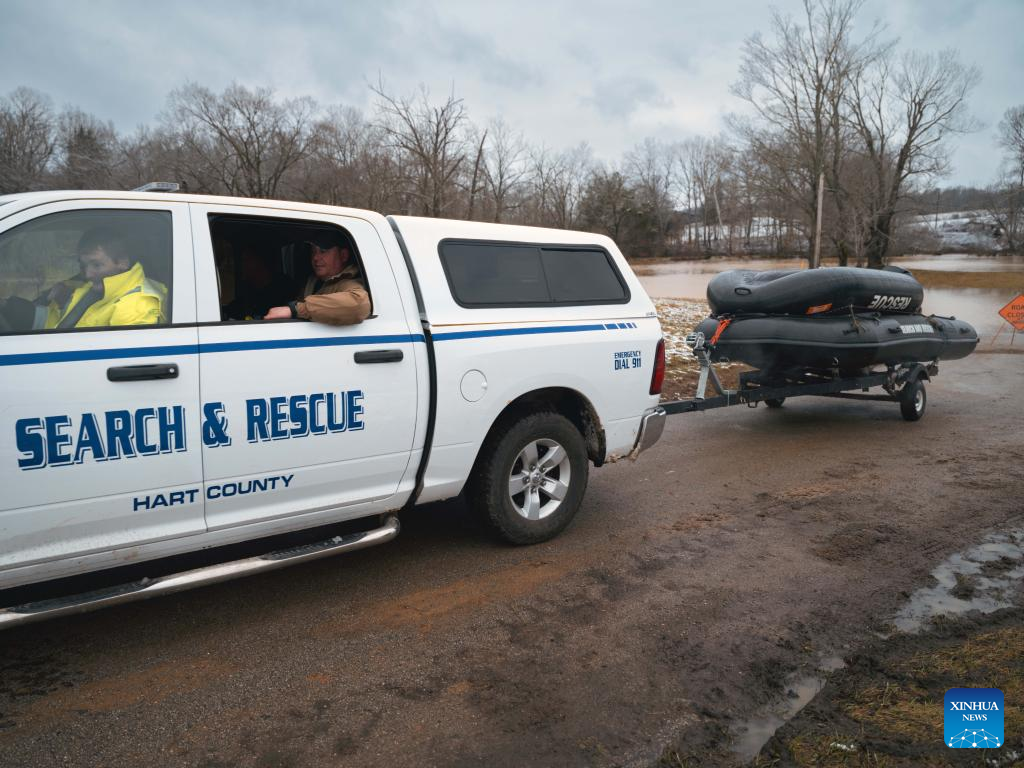 CHICAGO, Feb. 16 (Xinhua) -- Flood and storms induced by the latest round of harsh weather have lashed the mideastern parts of the United States, claiming at least nine lives, including eight in Kentucky, Governor Andy Beshear said Sunday.