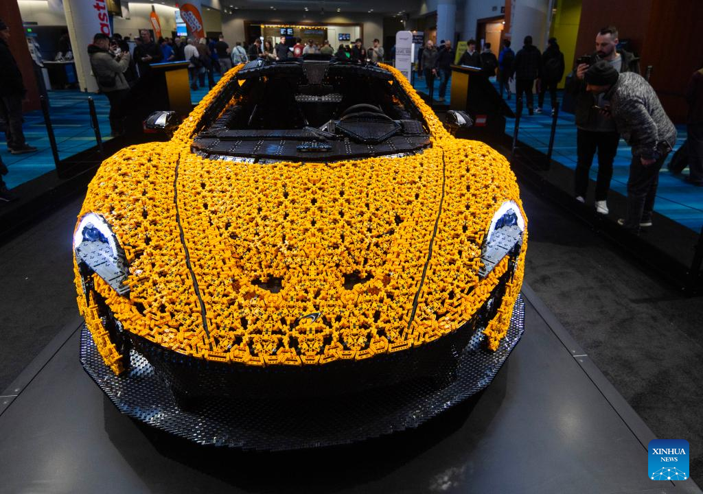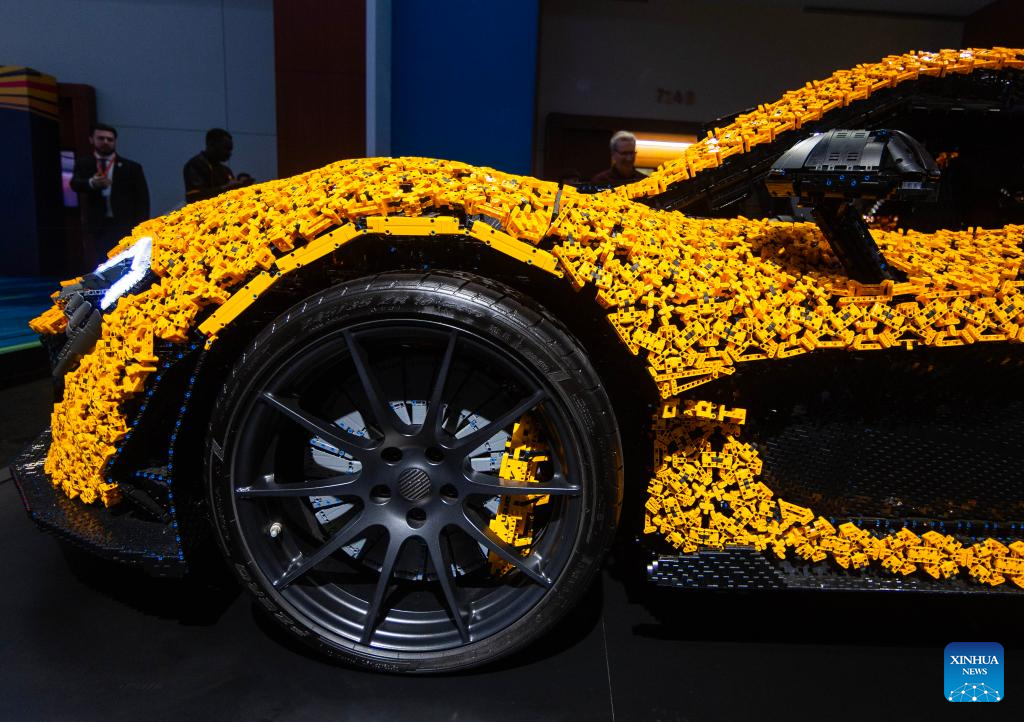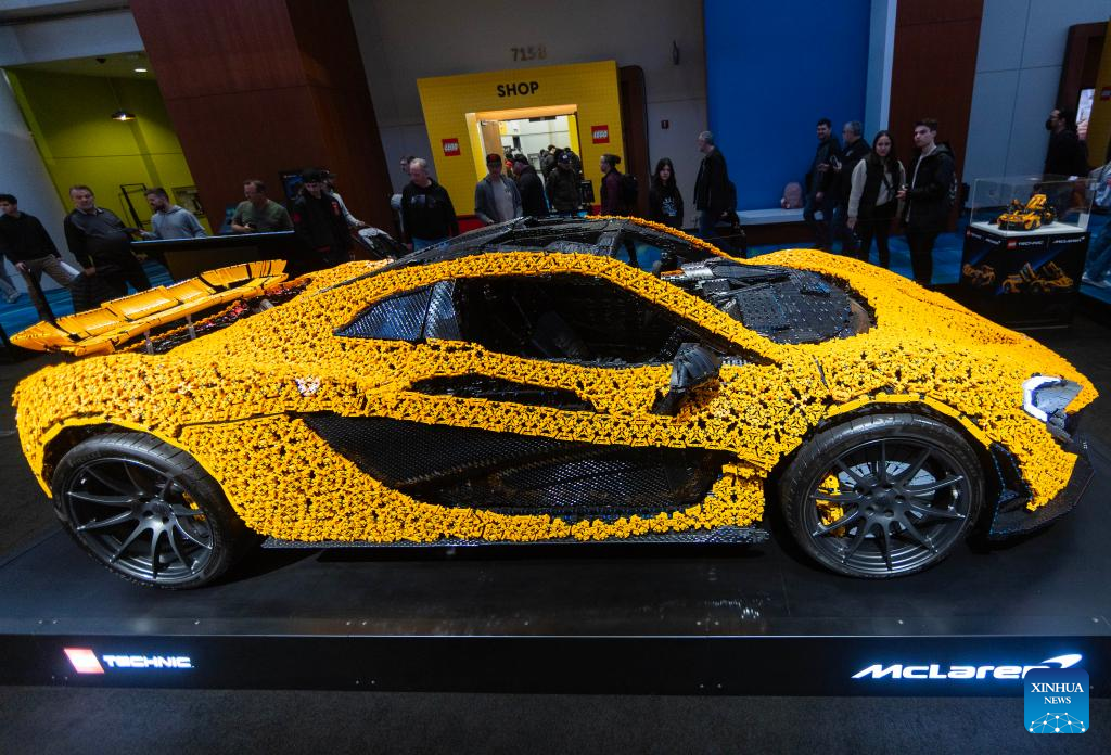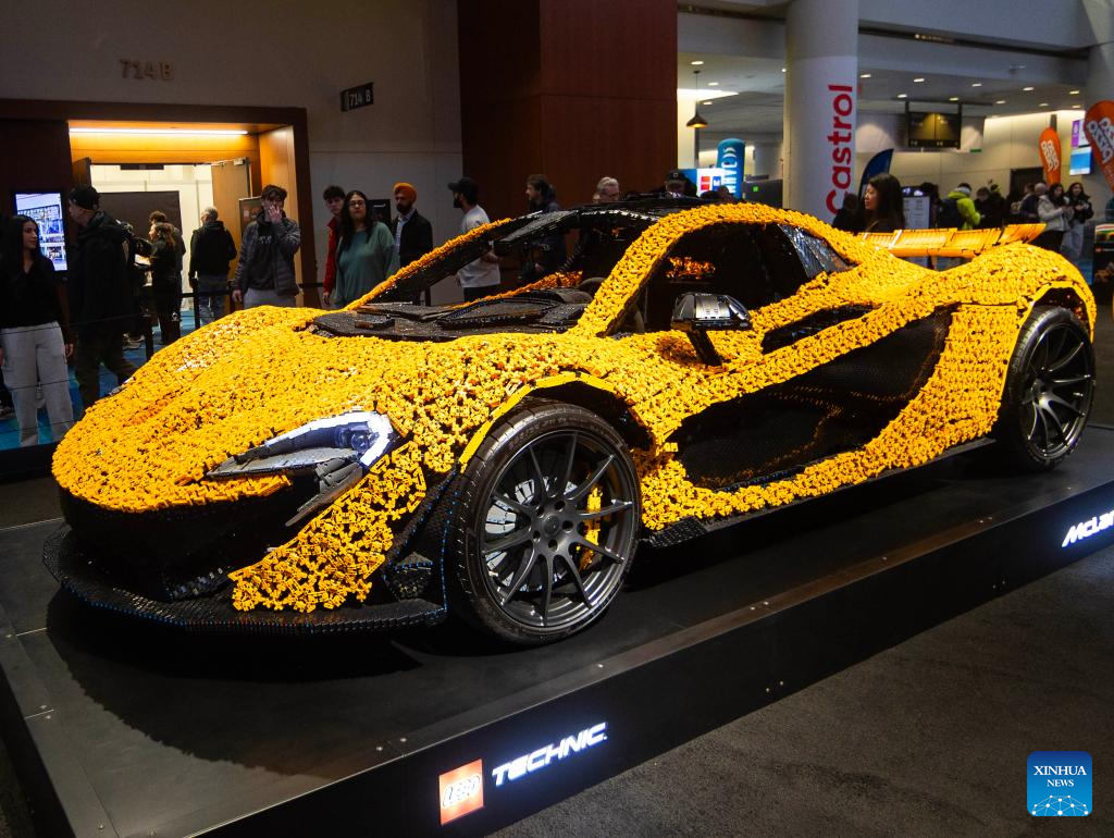 A life-size LEGO Technic McLaren P1 supercar is on display at the 2025 Canadian International AutoShow in Toronto, Canada, Feb. 18, 2025. Consisting of 342,817 LEGO Technic elements, a life-size model of McLaren P1 supercar is on display at the annual 10-day show starting from Feb. 14. (Photo by Zou Zheng/Xinhua)