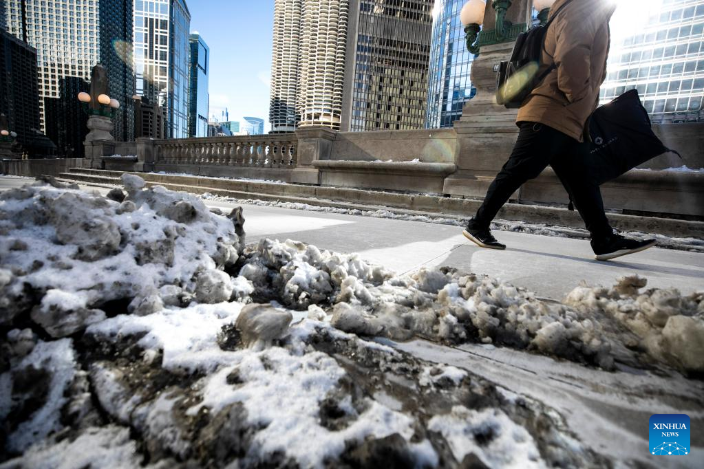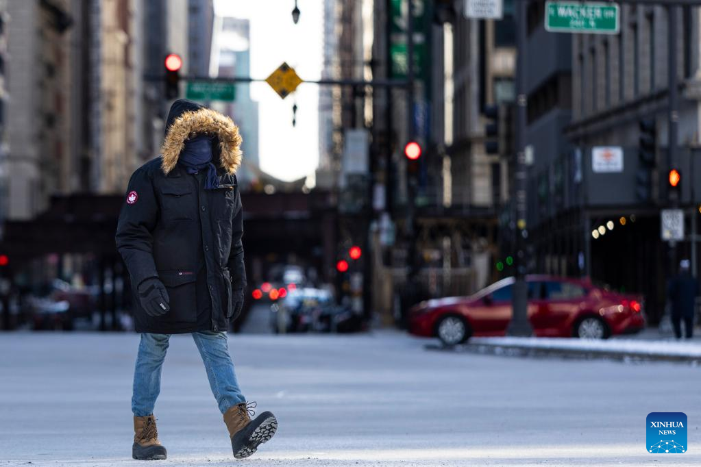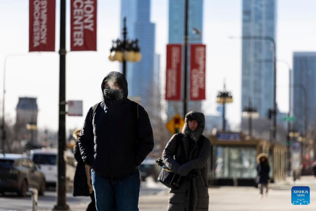 CHICAGO, Feb. 18 (Xinhua) -- Despite the sunshine, it is likely the coldest day of this week in Chicago on Tuesday, with the highest temperature being minus 23.9 Celsius degrees and the lowest plunging to minus 28.3 Celsius degrees. The wind chill is at minus 31.6 Celsius degrees.