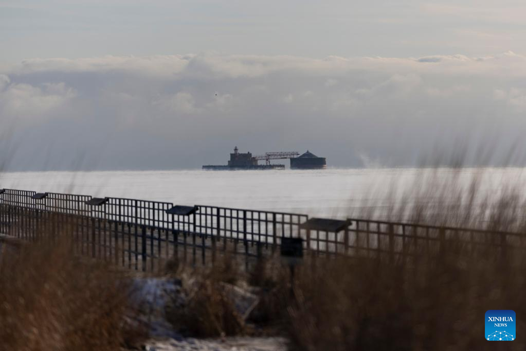 Steam rises off a partially frozen Lake Michigan in Chicago, the United States, on Feb. 18, 2025. (Photo by Vincent D. Johnson/Xinhua)