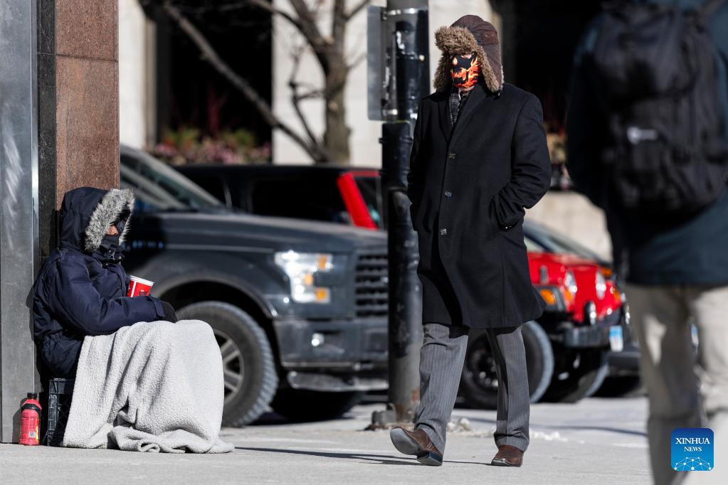 People bundled up walk on a street in Chicago, the United States, on Feb. 18, 2025. (Photo by Vincent D. Johnson/Xinhua)