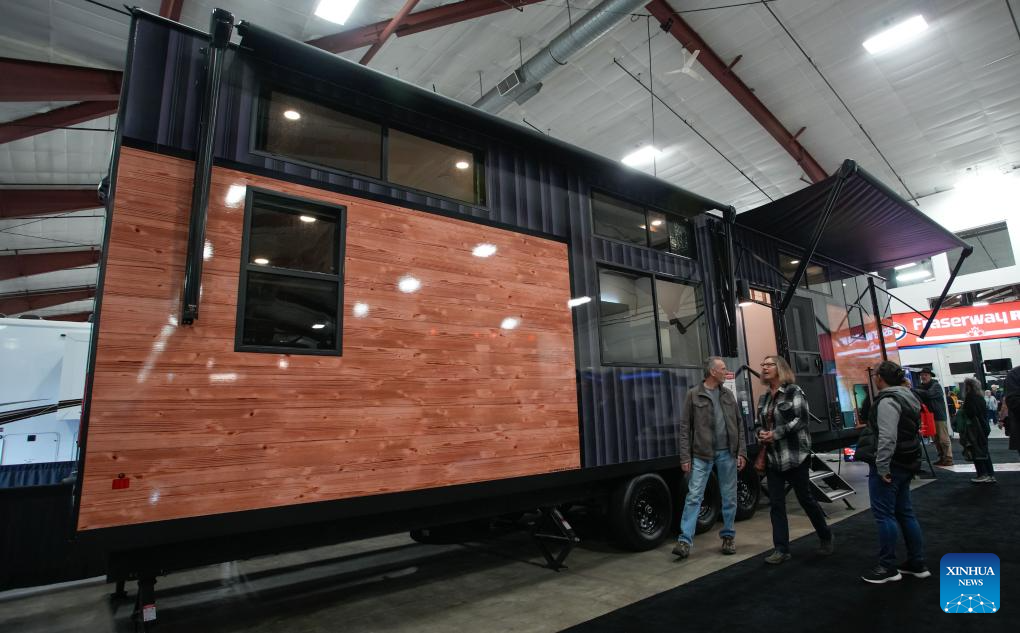 People visit the 2025 Earlybird RV Show and Sale in Abbotsford, British Columbia, Canada, Feb. 20, 2025. Featuring over 200 recreational vehicles (RVs) from 45 exhibitors across North America, this annual event is held here from Feb. 20 to Feb. 23. (Photo by Liang Sen/Xinhua)