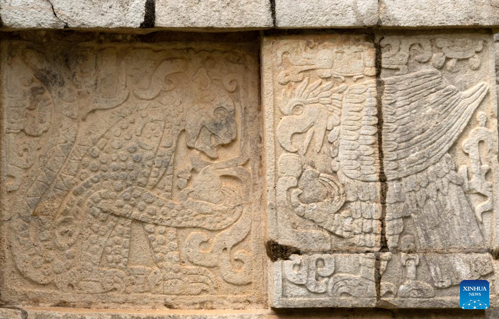 This photo taken on Feb. 20, 2025 shows stone carvings in Chichen Itza, Yucatan, Mexico. (Xinhua/Li Mengxin)