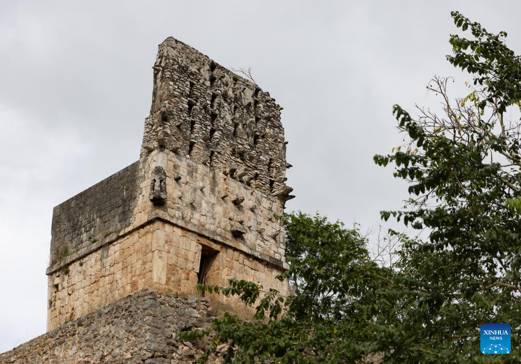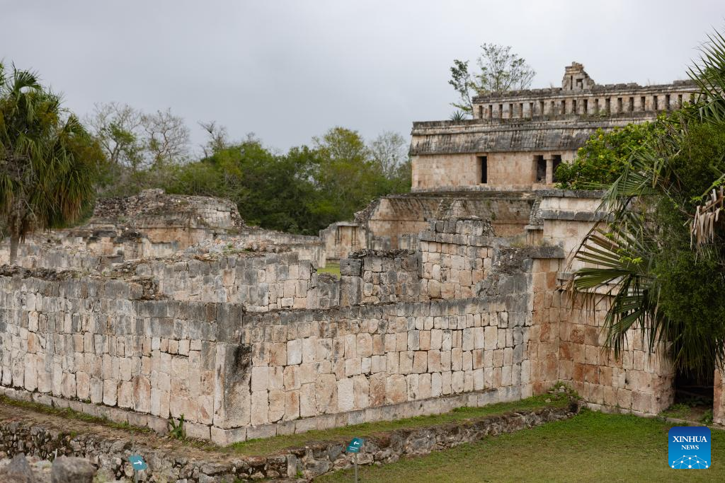 This photo taken on Feb. 21, 2025 shows the Kabah archaeological site in Yucatan, Mexico. The Puuc Route (Ruta Puuc) is located in Mexico's Yucatan state and is a route connecting several Mayan archaeological sites including Uxmal, Kabah and Labna. (Xinhua/Li Mengxin)