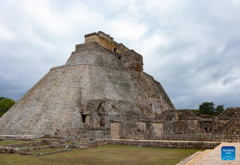 This photo taken on Feb. 21, 2025 shows the Uxmal archaeological site in Yucatan, Mexico. The Puuc Route (Ruta Puuc) is located in Mexico's Yucatan state and is a route connecting several Mayan archaeological sites including Uxmal, Kabah and Labna. (Xinhua/Li Mengxin)