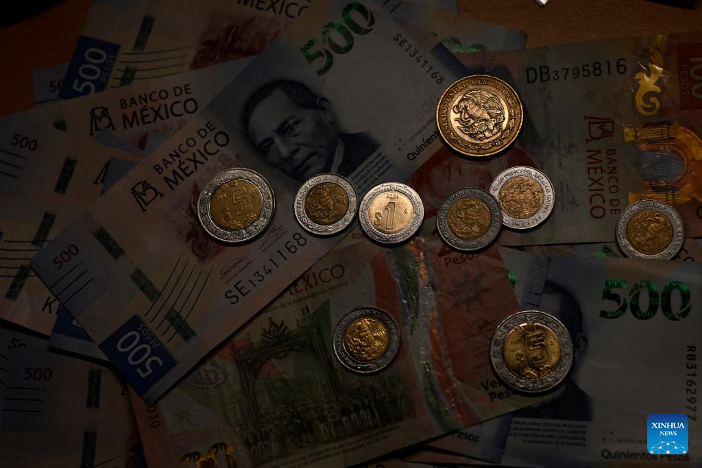 Mexican peso banknotes and coins are pictured in Mexico City, Mexico, March 4, 2025. The 25-percent U.S. tariffs, which took effect at midnight between Monday and Tuesday, have already impacted Mexico's financial markets. The Mexican peso depreciated nearly 1 percent on Tuesday, reaching 20.90 per U.S. dollar in interbank trading. Analysts attribute the decline to concerns over escalating trade tensions, warning that further U.S. tariff hikes could follow. (Xinhua/Li Muzi)