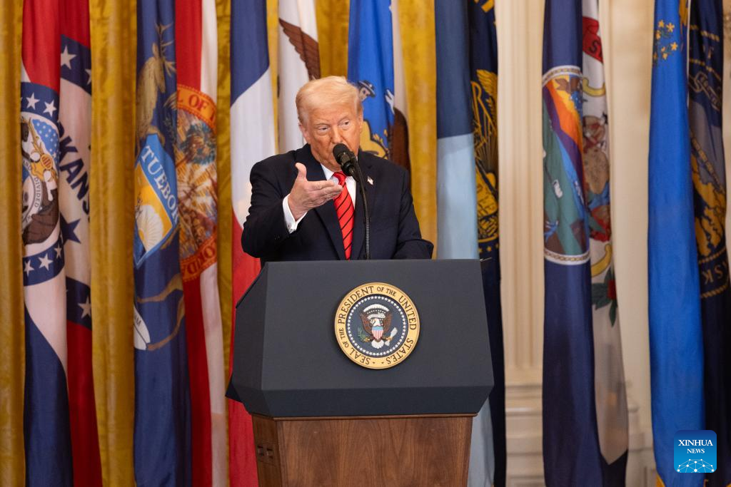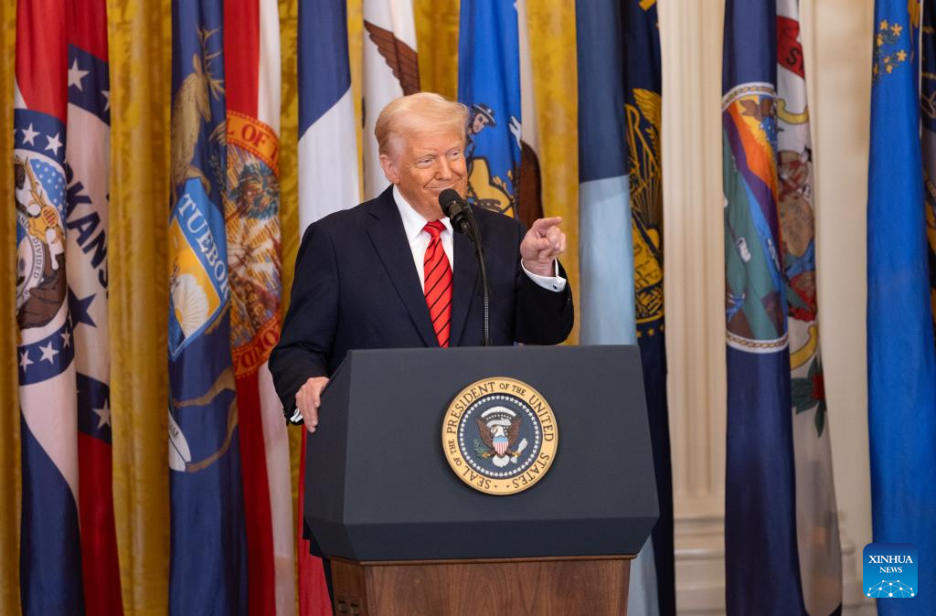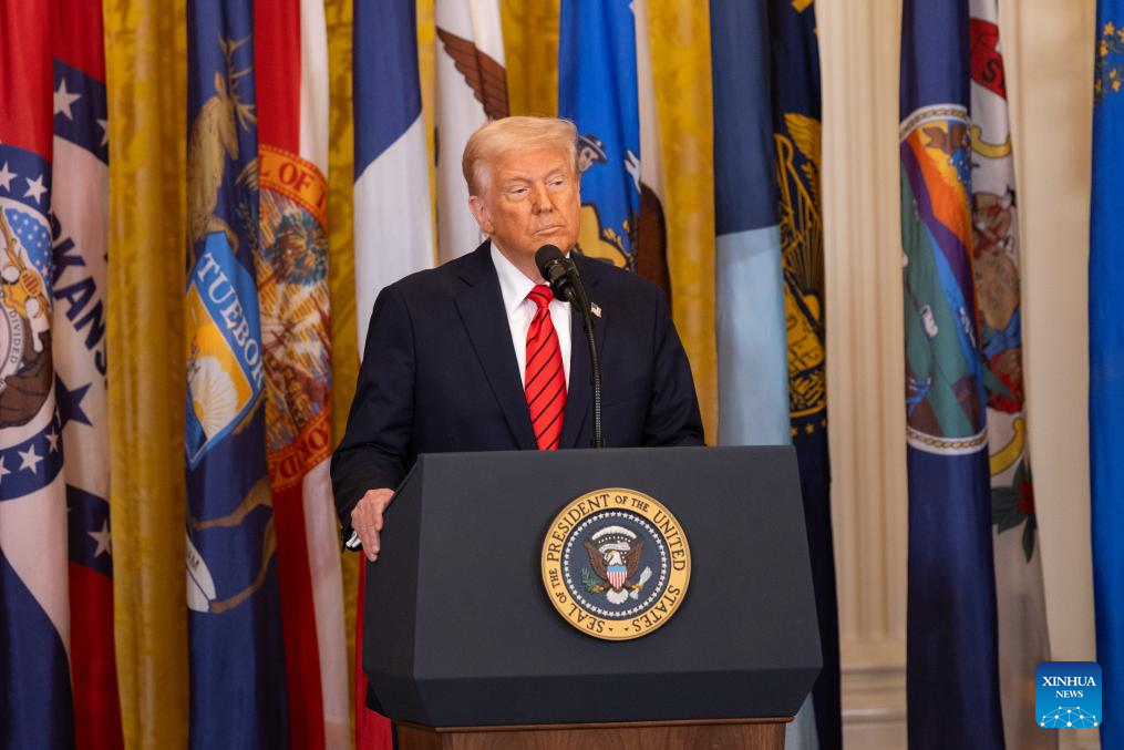 U.S. President Donald Trump speaks before signing an executive order at the White House in Washington, D.C., the United States, on March 20, 2025. Trump on Thursday signed an executive order to formally begin the process of dismantling the Education Department, saying that his administration is returning education back to the states. (Xinhua/Hu Yousong)