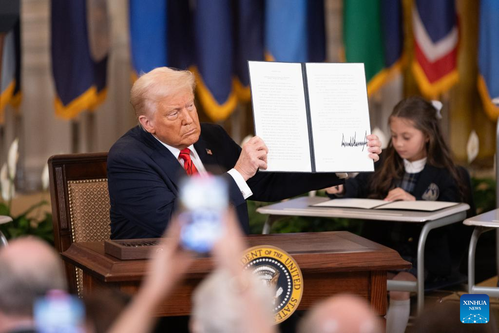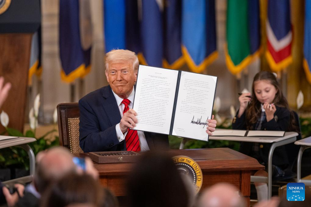 WASHINGTON, March 20 (Xinhua) -- U.S. President Donald Trump on Thursday signed an executive order to formally begin the process of dismantling the Education Department, saying that his administration is returning education back to the states.