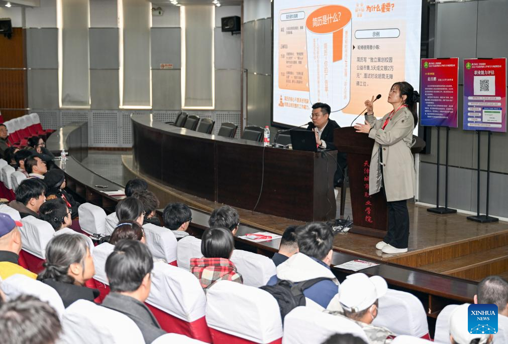 A lesson on job interview for graduated people with disabilities is held during a job fair in north China's Tianjin, March 26, 2025. A job fair was held for people with disabilities who graduated from higher education in Tianjin on Wednesday, providing over 100 positions to job seekers. (Xinhua/Zhao Zishuo)