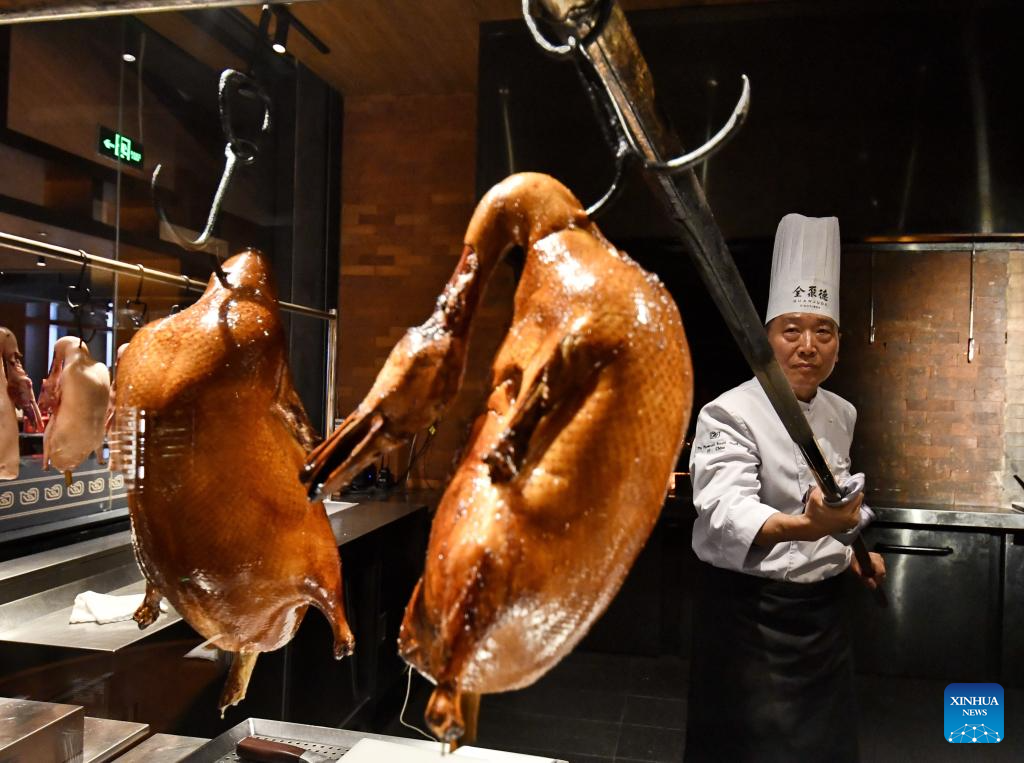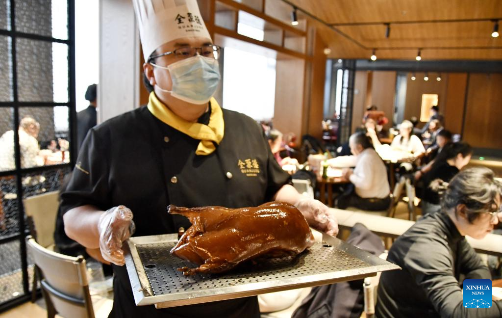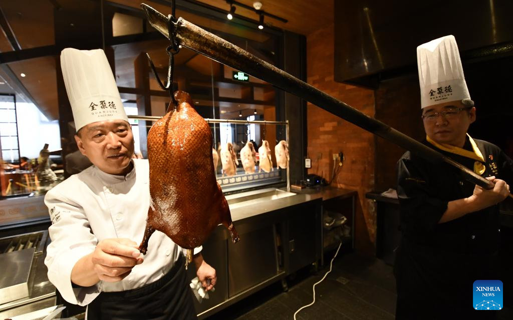 Being a "name card" of Chinese food, Quanjude has also served foreign leaders and tourists during various international events and occasions such as the Olympic Games, bringing the culture of traditional Chinese cuisine to the whole world. (Xinhua/Li Xin)