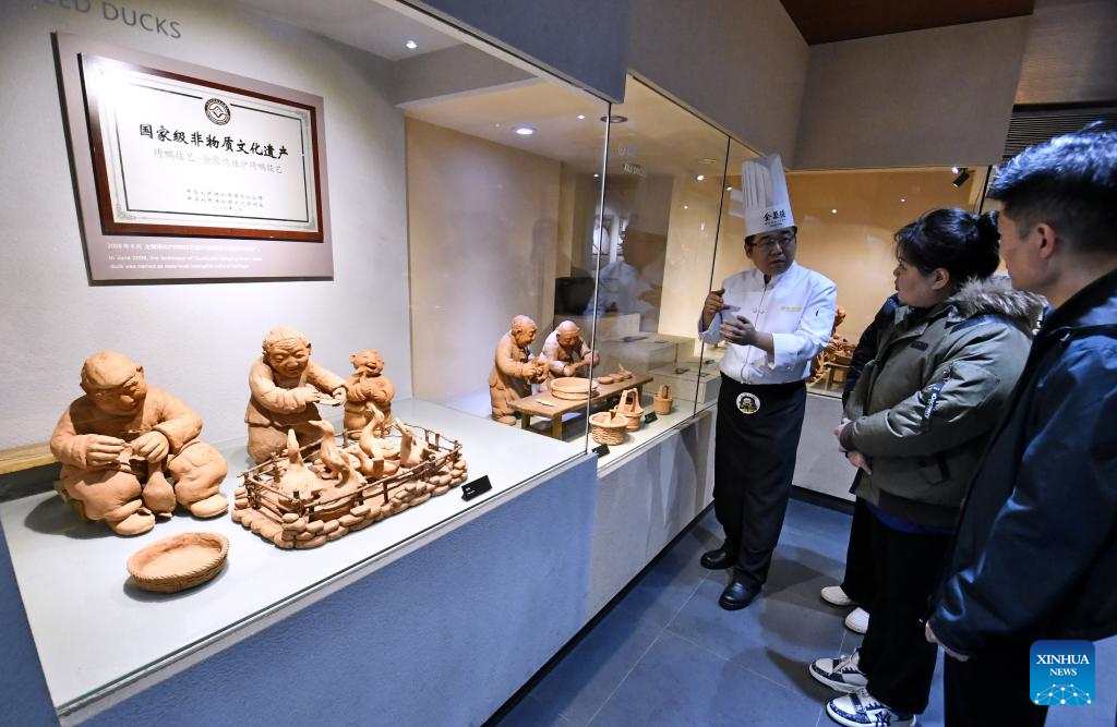 People visit a museum of Quanjude at the Hepingmen store of Quanjude in Beijing, capital of China, March 13, 2025. (Xinhua/Li Xin)