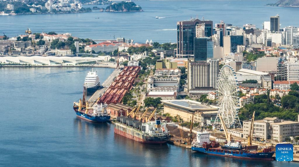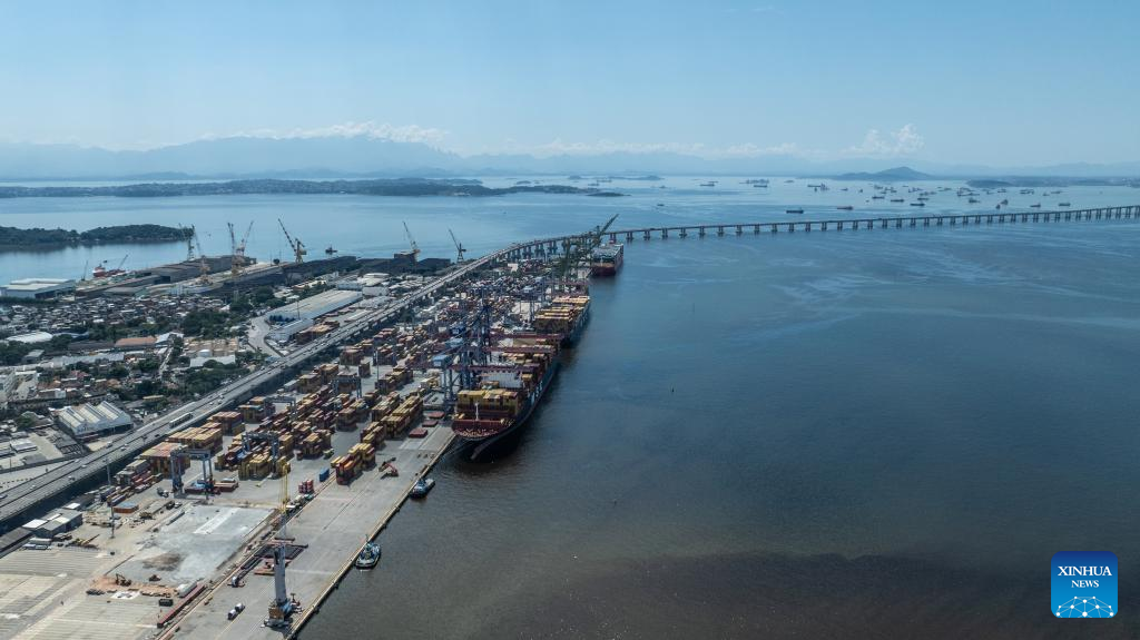 Ships berth at a port in Rio de Janeiro, Brazil, on April 3, 2025. Brazil's Congress on Wednesday passed a bill that allows the government to impose reciprocal trade and environmental measures against foreign restrictions, just hours after U.S. President Donald Trump announced a new 10 percent tariff on all Brazilian imports. (Xinhua/Wang Tiancong)