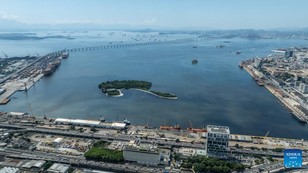 Aerial photo taken on April 3, 2025 shows a view of a port in Rio de Janeiro, Brazil. Brazil's Congress on Wednesday passed a bill that allows the government to impose reciprocal trade and environmental measures against foreign restrictions, just hours after U.S. President Donald Trump announced a new 10 percent tariff on all Brazilian imports. (Xinhua/Wang Tiancong)