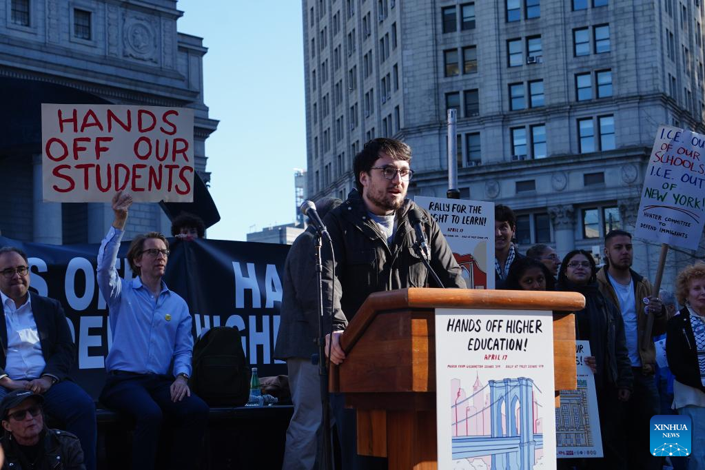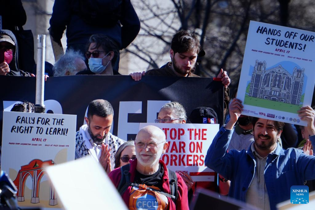NEW YORK, April 17 (Xinhua) -- Hundreds of faculty, students, researchers, and staff from New York universities rallied in Manhattan on Thursday against policies and funding cuts targeting higher education under U.S. President Donald Trump's administration.