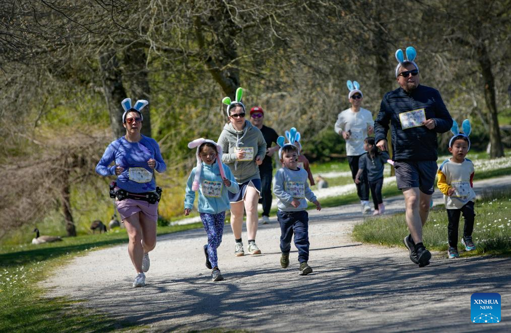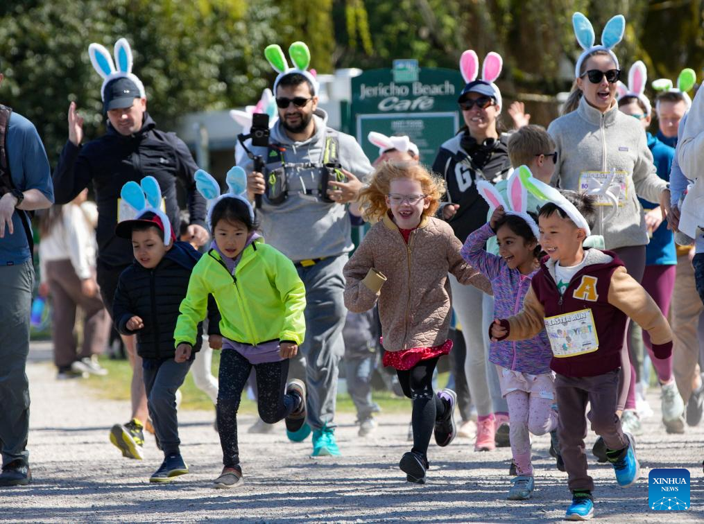 People take part in the Big Easter Run at Jericho Beach in Vancouver, British Columbia, Canada, April 19, 2025. The holiday-themed event draws hundreds of runners in bunny costumes to celebrate Easter, which falls on April 20 this year. (Photo by Liang Sen/Xinhua)