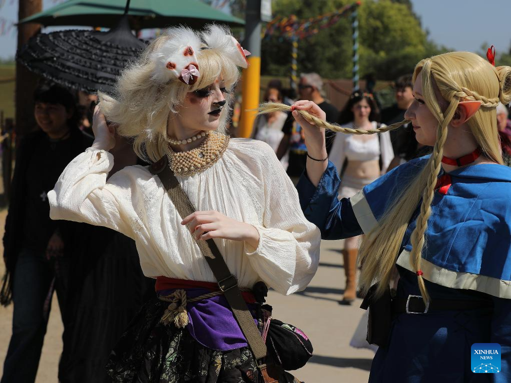 People in costumes participate in the Renaissance Pleasure Faire in Irwindale, Los Angeles County, the United States, on April 20, 2025. (Photo by Qiu Chen/Xinhua)