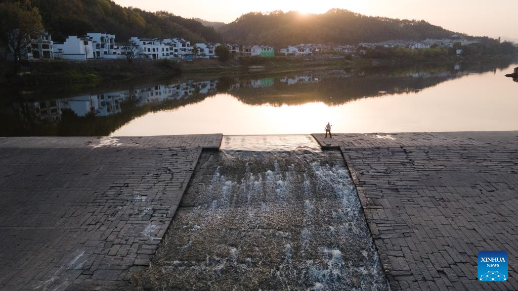 A drone photo shows the Yuliang dam in Shexian County of Huangshan City, east China's Anhui Province, March 24, 2025. Located at the junction of Huangshan Mountains and Xin'an River, Shexian County of east China's Anhui Province has carried the essence of Hui-style culture and architecture. Huizhou Ancient City, lying at the heart of Shexian, is one of the best-preserved ancient towns in China. Its network of ancient streets, alleys, and bridges is complemented by traditional residences, ancestral halls, and memorial archways.