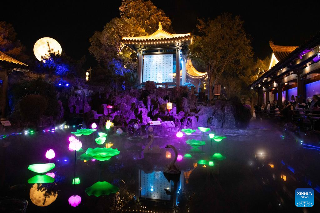 An aerial drone photo shows visitors enjoying performance of fish-shaped lanterns at Yuliang ancient town in Shexian County of Huangshan City, east China's Anhui Province, March 24, 2025. Located at the junction of Huangshan Mountains and Xin'an River, Shexian County of east China's Anhui Province has carried the essence of Hui-style culture and architecture. Huizhou Ancient City, lying at the heart of Shexian, is one of the best-preserved ancient towns in China. Its network of ancient streets, alleys, and bridges is complemented by traditional residences, ancestral halls, and memorial archways.