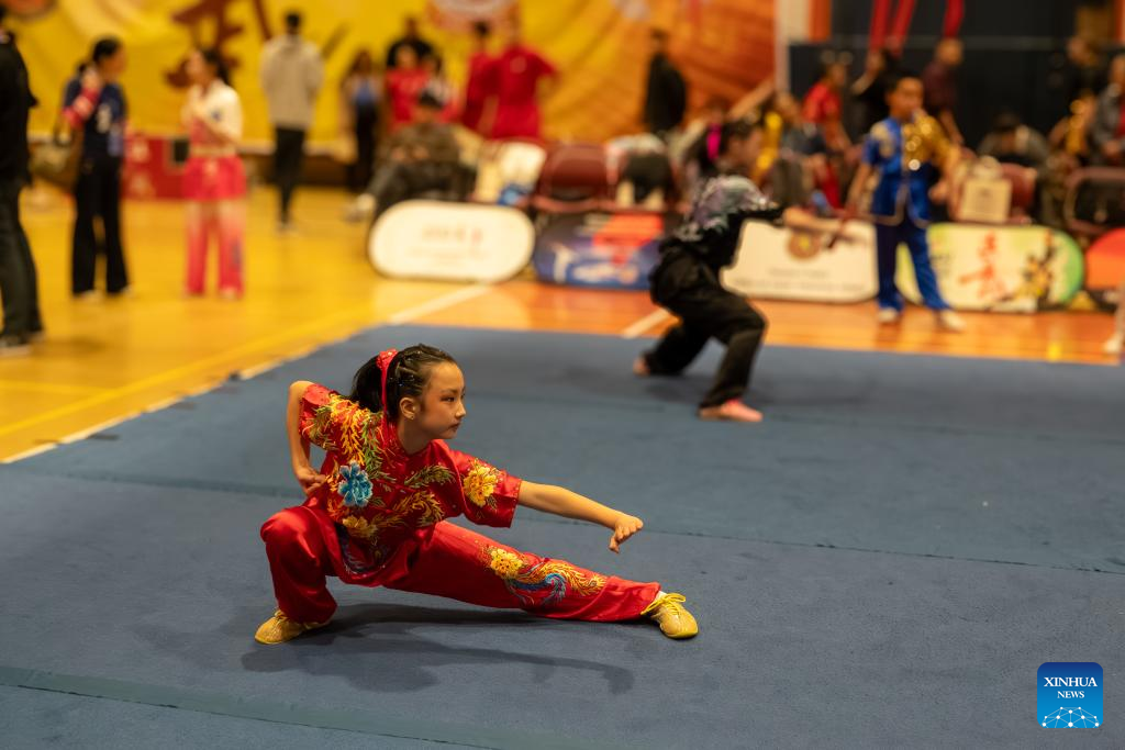 NEW YORK, April 23 (Xinhua) -- On a crisp spring Saturday, the sound of swords slicing through the air and the rhythmic thuds of martial artists landing strikes echoed through a packed venue in Nassau County, Long Island, New York State. But this was more than a competition - it was a celebration of culture, discipline, and unity.