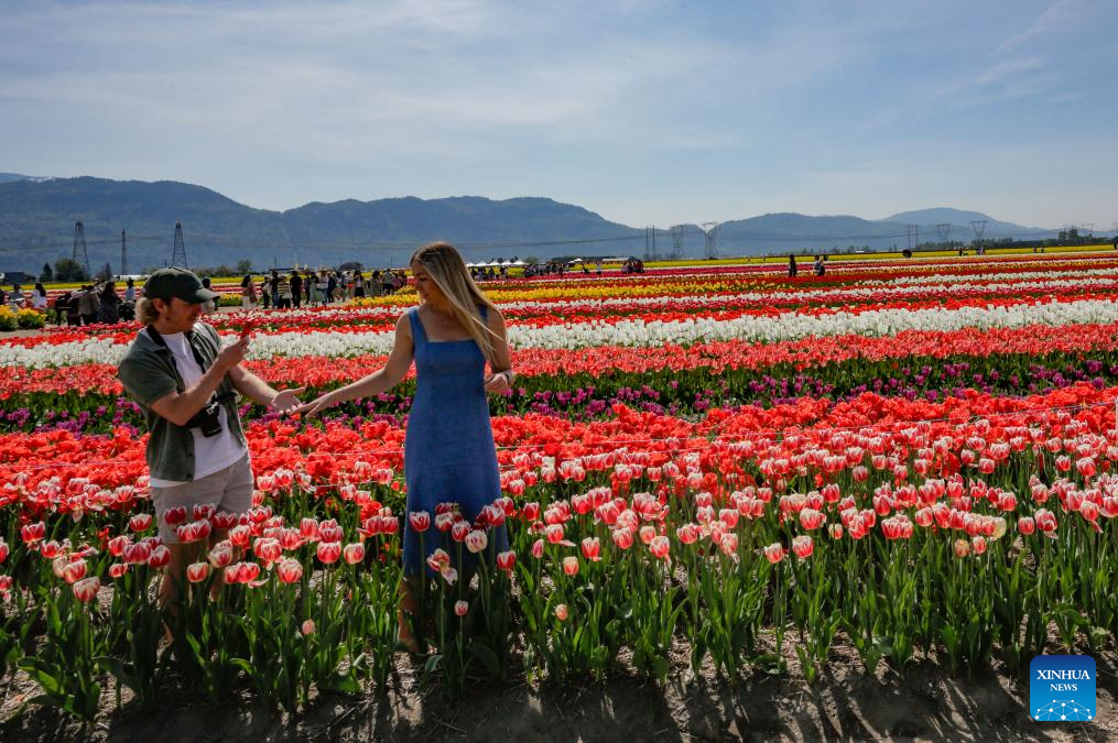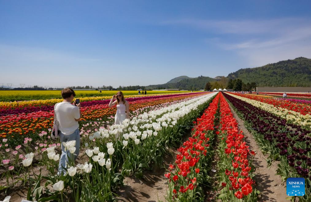 A tulip festival, featuring more than 100 tulip varieties, is held in Abbotsford until May 11. (Photo by Liang Sen/Xinhua)