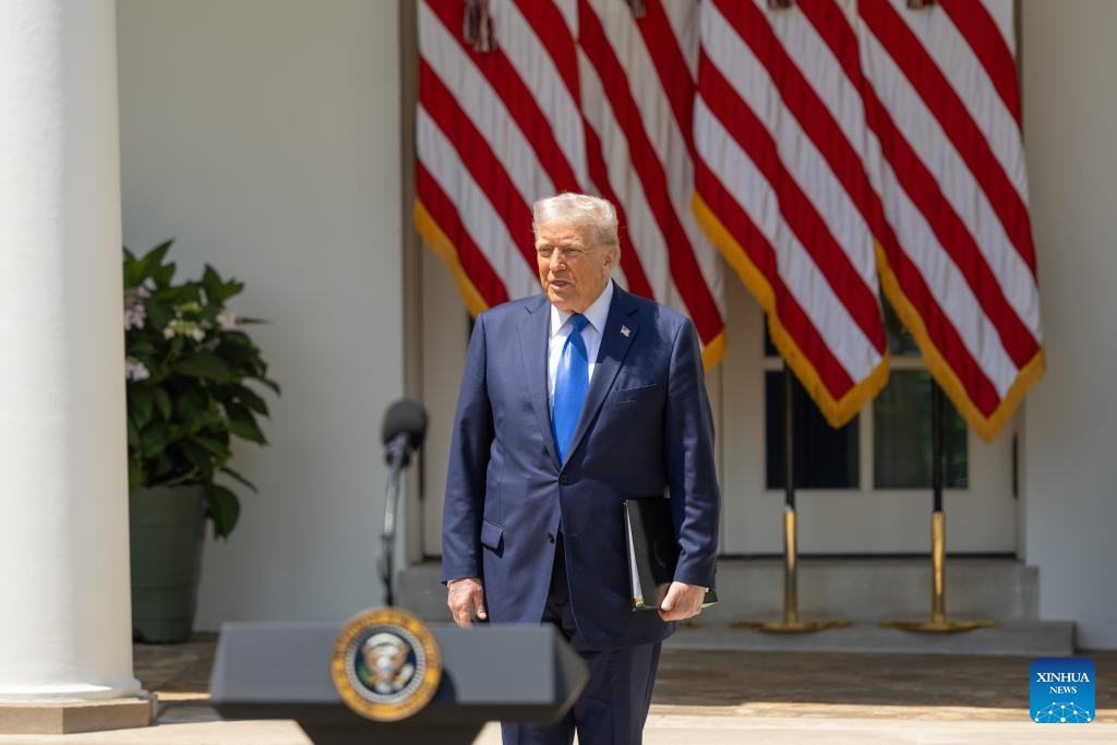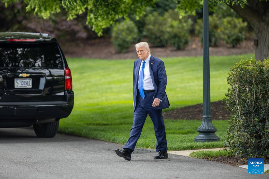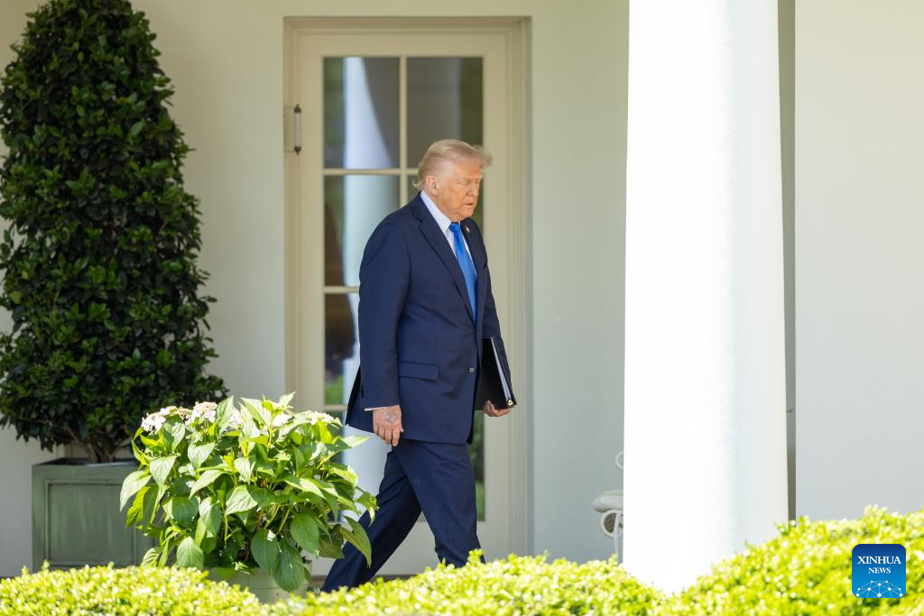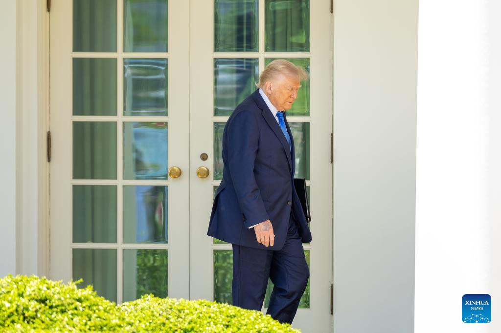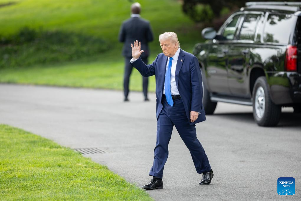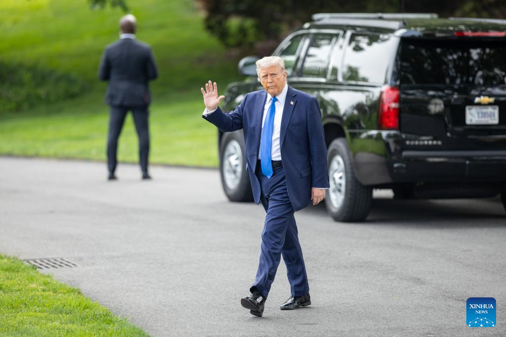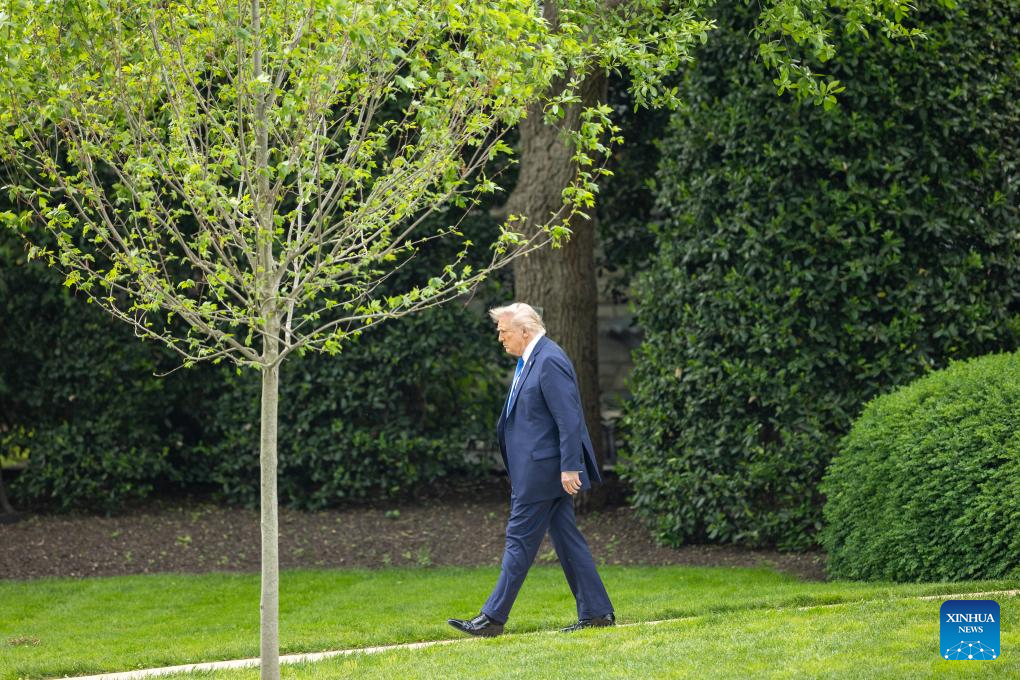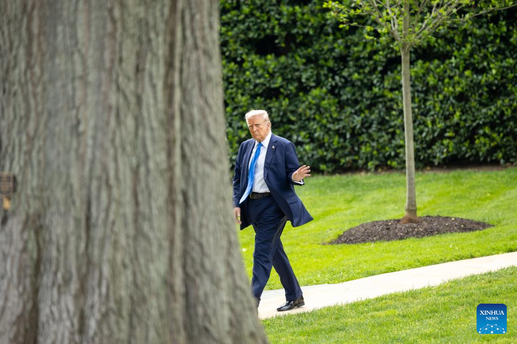 U.S. President Donald Trump walks toward the South Lawn to board Marine One at the White House in Washington, D.C., the United States, on May 1, 2025. (Xinhua/Hu Yousong)