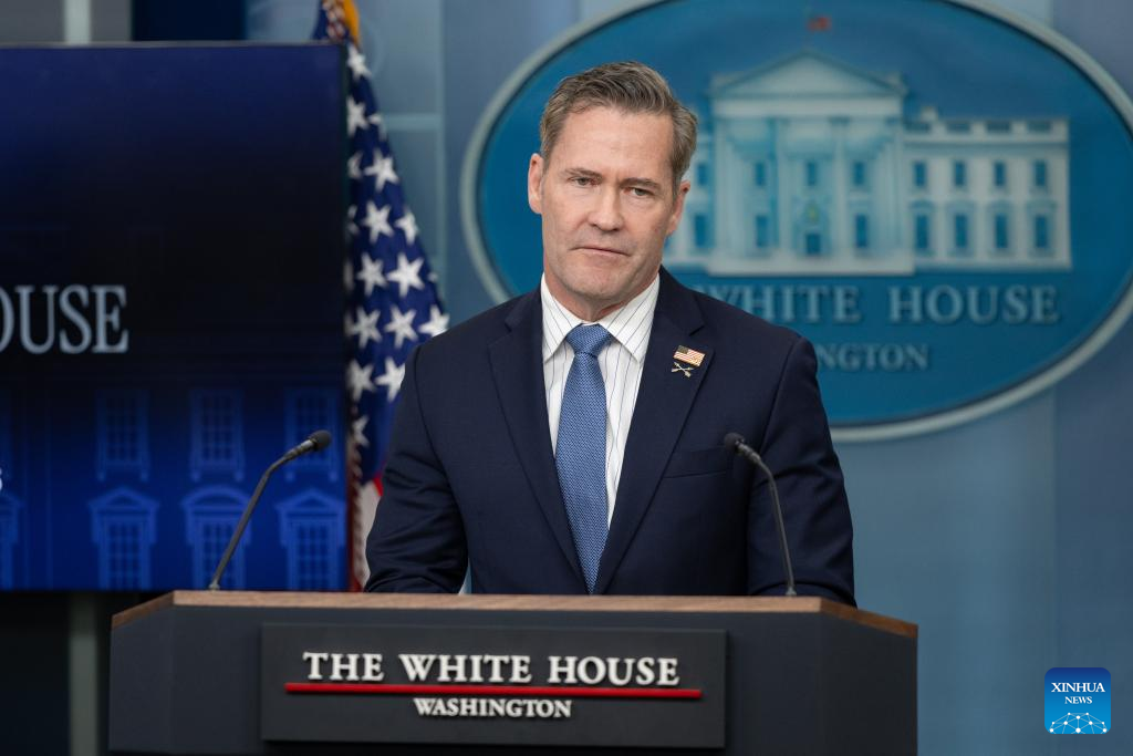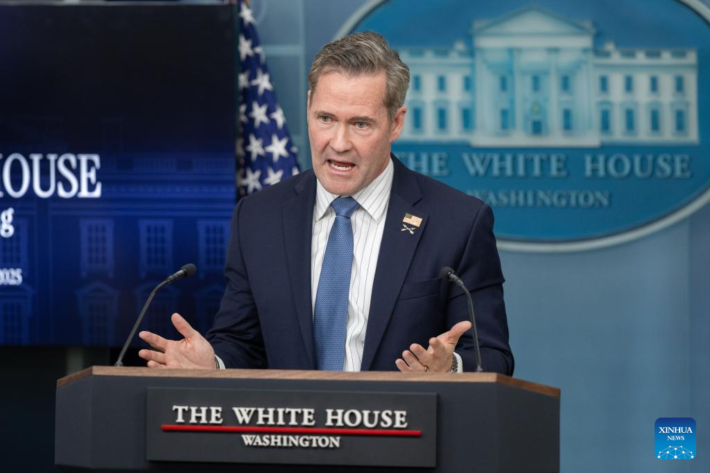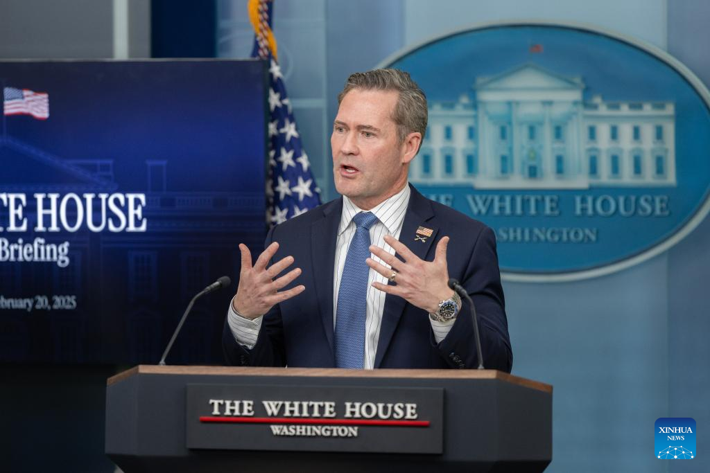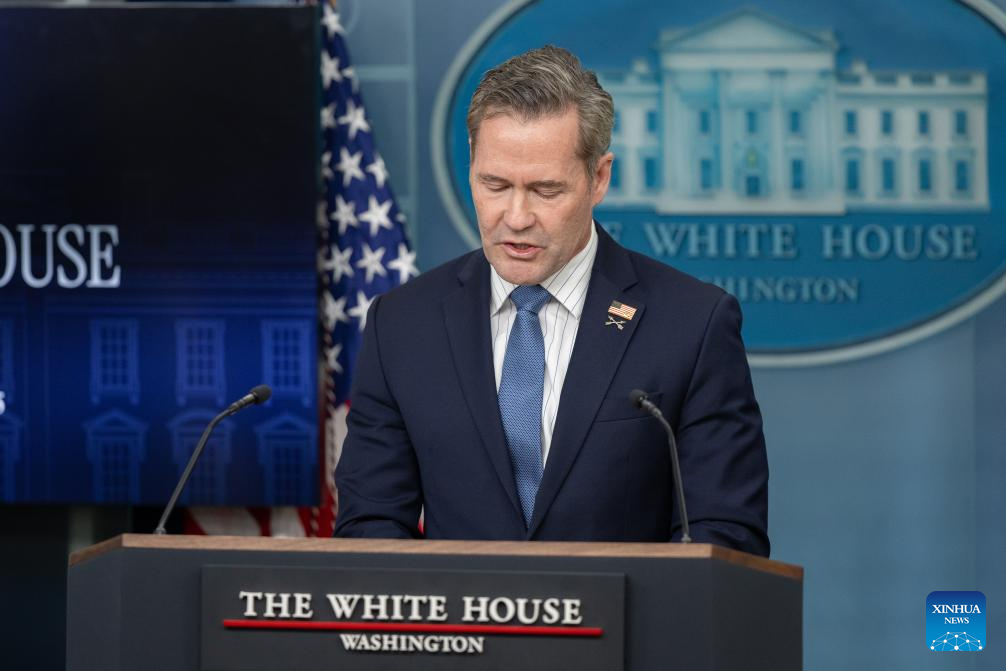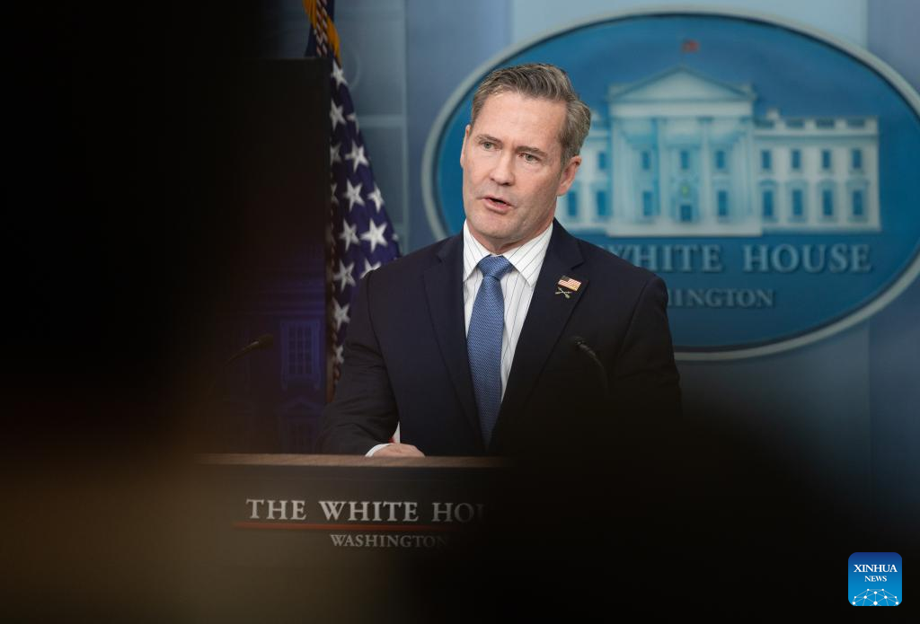File photo taken on Feb. 20, 2025 shows U.S. National Security Advisor Mike Waltz speaking during a press briefing at the White House in Washington, D.C., the United States. (Xinhua/Hu Yousong)