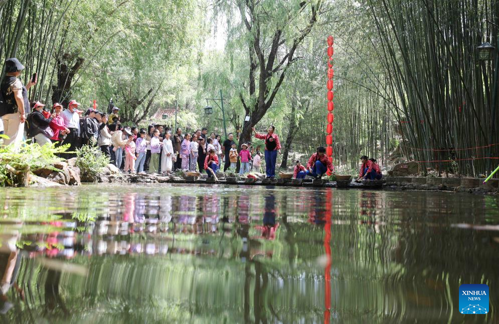 Tourists watch a folk art show in Zhuquan Village of Yinan County, Linyi City, east China's Shandong Province, May 4, 2025. People across China enjoy the ongoing May Day holiday in various ways. (Photo by Wang Yanbing/Xinhua)