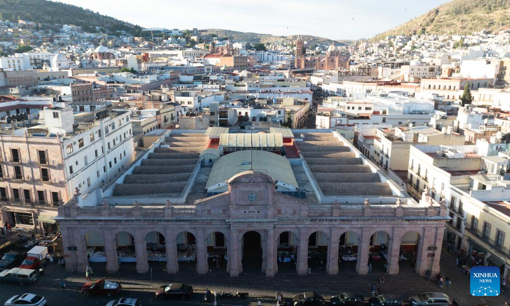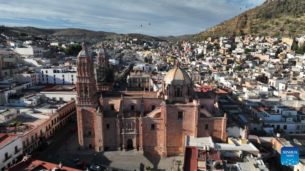 An aerial drone photo taken on May 6, 2025 shows a view of the historic center of Zacatecas, state of Zacatecas, Mexico. Once a major silver mining region in Latin America, Zacatecas had promoted the city's historical prosperity with its mineral wealth. As resources exhausted, the city shifted its focus on culture and tourism by preserving its rich colonial architecture and mining heritage, including the historic city center, recognized as a UNESCO World Cultural Heritage Site, and the iconic El Eden Mine, and drawing numerous tourists from around the world. (Xinhua/Li Mengxin)