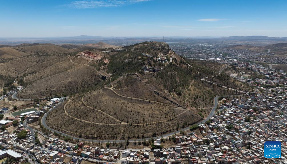 An aerial drone photo taken on May 7, 2025 shows a view of Bufa Hill in Zacatecas, state of Zacatecas, Mexico. Once a major silver mining region in Latin America, Zacatecas had promoted the city's historical prosperity with its mineral wealth. As resources exhausted, the city shifted its focus on culture and tourism by preserving its rich colonial architecture and mining heritage, including the historic city center, recognized as a UNESCO World Cultural Heritage Site, and the iconic El Eden Mine, and drawing numerous tourists from around the world. (Xinhua/Li Mengxin)