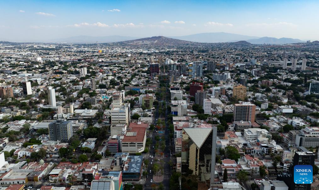 This aerial drone photo taken on May 8, 2025 shows a city view of Guadalajara, Jalisco, Mexico. Guadalajara, Mexico's second-largest city, is a key economic hub and preserves rich cultural heritages. (Xinhua/Li Mengxin)
