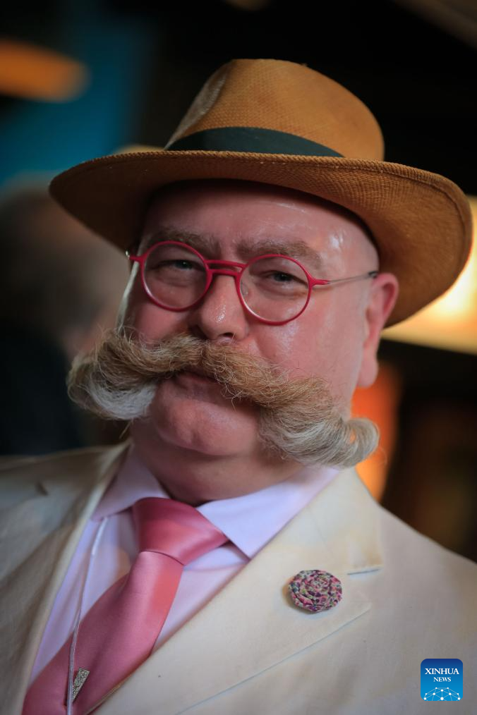 A contestant shows his moustache during the 10th annual Vancouver Facial Hair Competition in Vancouver, British Columbia, Canada, May 10, 2025. The competition drew beard and moustache enthusiasts to compete in 10 different categories. (Photo by Liang Sen/Xinhua)