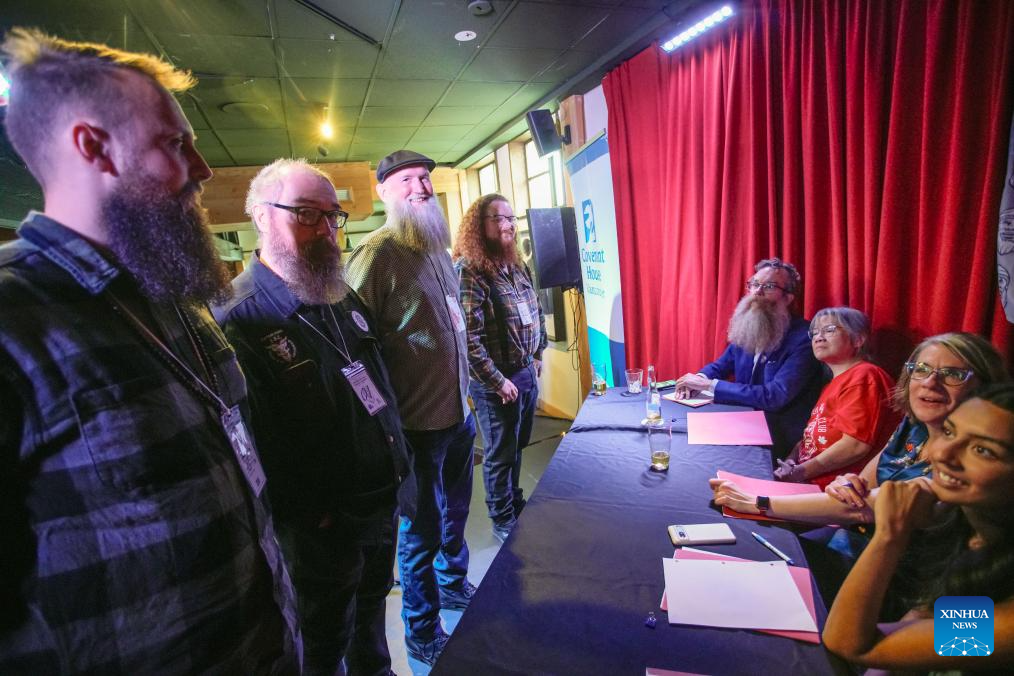 Contestants show their beards to the judges during the 10th annual Vancouver Facial Hair Competition in Vancouver, British Columbia, Canada, May 10, 2025. The competition drew beard and moustache enthusiasts to compete in 10 different categories. (Photo by Liang Sen/Xinhua)