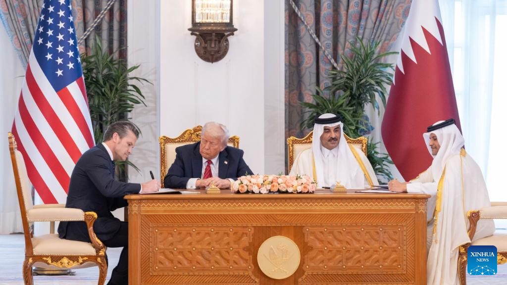 DOHA, May 14 (Xinhua) -- Qatar and the United States signed here on Wednesday a series of deals to boost bilateral cooperation following a meeting between the two heads of state, according to a statement from the Emiri Diwan, the administrative office of the Qatari emir.