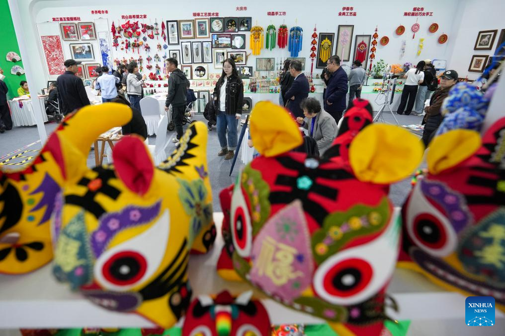 Visitors look at cultural and creative products at the 34th Harbin International Economic and Trade Fair in Harbin, capital of northeast China's Heilongjiang Province, May 17, 2025. The fair opened here on Saturday, attracting exhibitors from over 110 countries and regions. (Xinhua/Wang Jianwei)