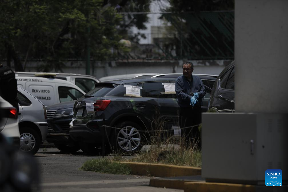 Photo taken on May 20, 2025 shows the site of an attack against Mexico City Mayor Clara Brugada's personal secretary Ximena Guzman and adviser Jose Munoz, in Mexico City, Mexico. Two close collaborators of Mexico City Mayor Clara Brugada were murdered in an attack on Tuesday morning: her personal secretary Ximena Guzman and her adviser Jose Munoz. (Str/Xinhua)