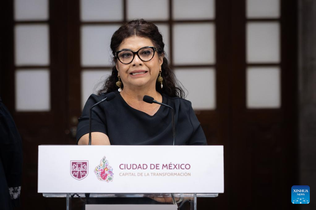 Mexico City Mayor Clara Brugada speaks during a press conference in Mexico City, Mexico, on May 20, 2025. Two close collaborators of Mexico City Mayor Clara Brugada were murdered in an attack on Tuesday morning: her personal secretary Ximena Guzman and her adviser Jose Munoz. (Str/Xinhua)