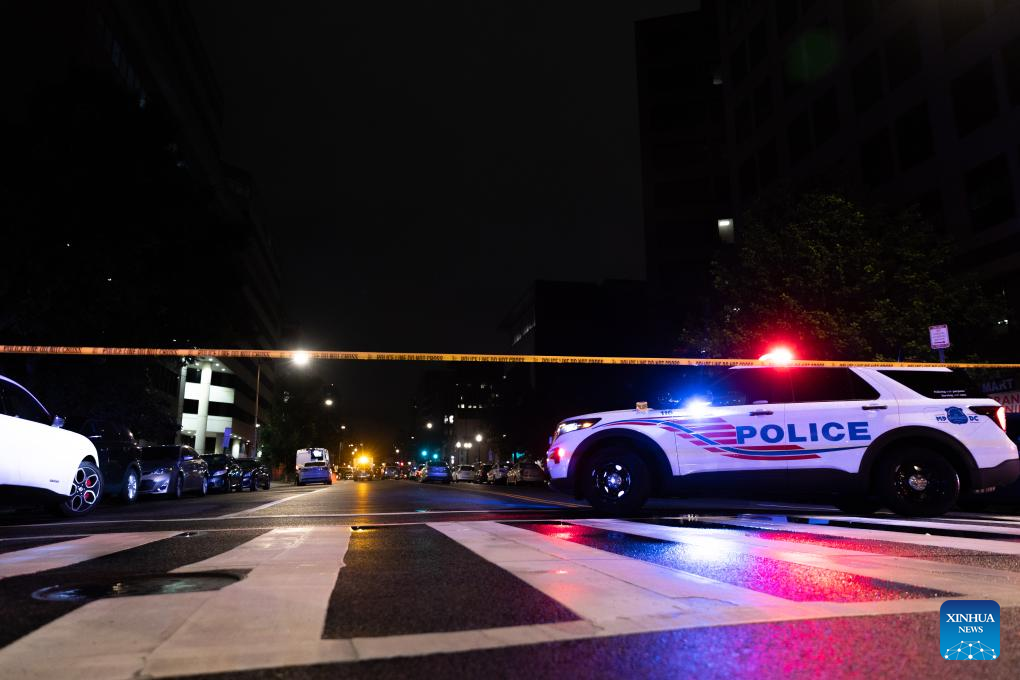 This photo taken on May 22, 2025 shows the site where two Israeli embassy employees were killed in Washington D.C., the United States. Two Israeli embassy employees were killed late Wednesday near a Jewish museum in Washington D.C., U.S. Homeland Security Secretary Kristi Noem said. (Xinhua/Hu Yousong)