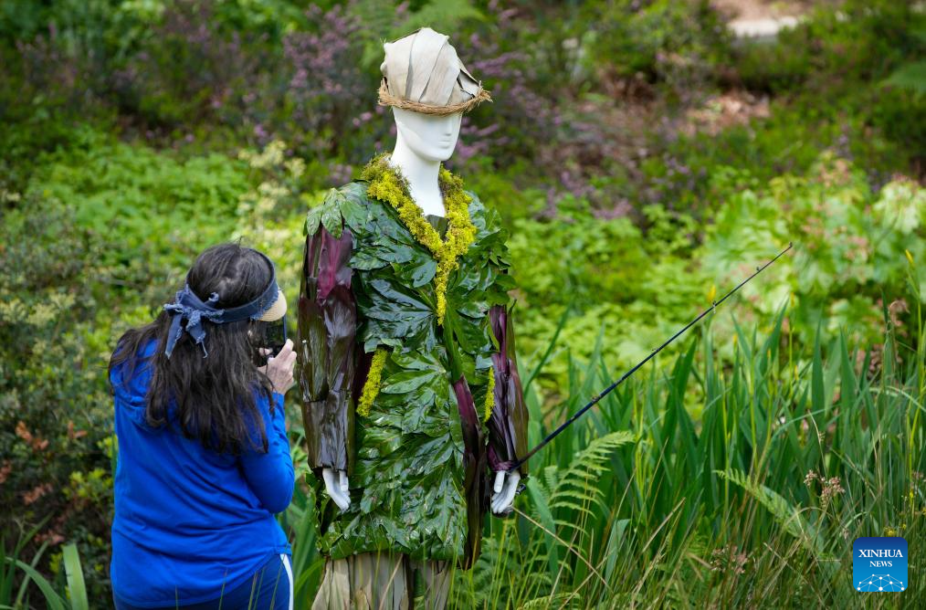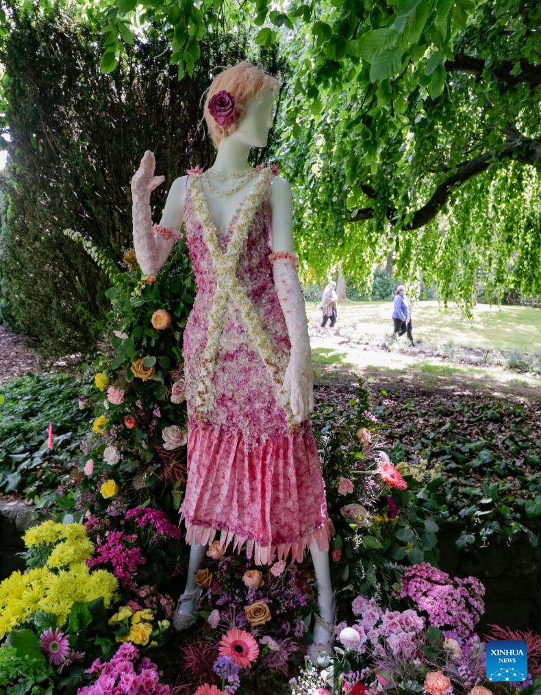 Floral mannequins are displayed during the 2025 Fleurs de Villes DOWNTON ABBEY exhibition at VanDusen Botanical Garden in Vancouver, British Columbia, Canada, May 23, 2025. Featuring over 20 floral installations created by local florists, the event is held here from May 23 to June 1 this year. (Photo by Liang Sen/Xinhua)