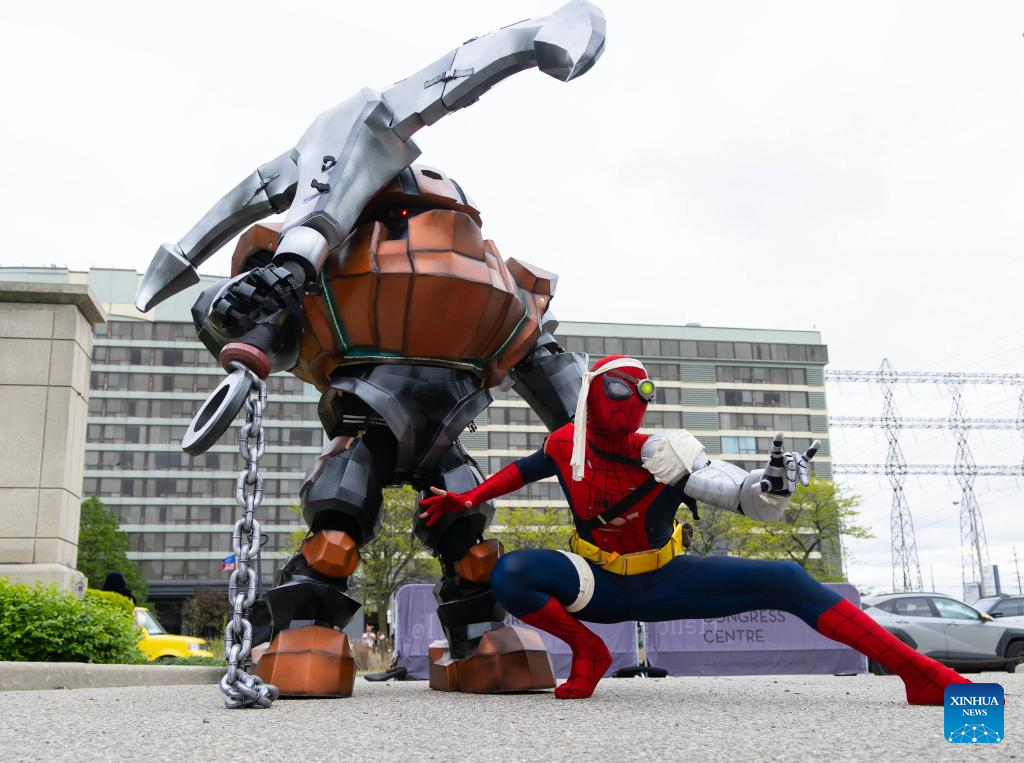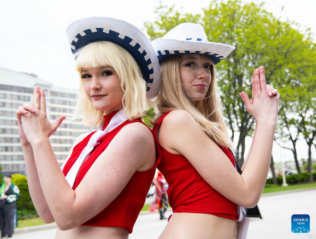 Cosplayers pose for photos during the Anime North 2025 in Toronto, Canada, May 23, 2025. The annual three-day event kicked off here on Friday to all anime fans from around the world. (Photo by Zou Zheng/Xinhua)