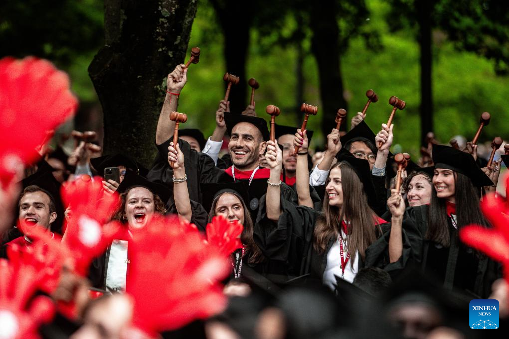 Students attend commencement ceremony at Harvard University in Cambridge, Massachusetts, the United States, May 29, 2025. A U.S. federal judge on Thursday extended a Temporary Restraining Order on Trump Administration's policy that aimed to prevent Harvard University from enrolling international students.