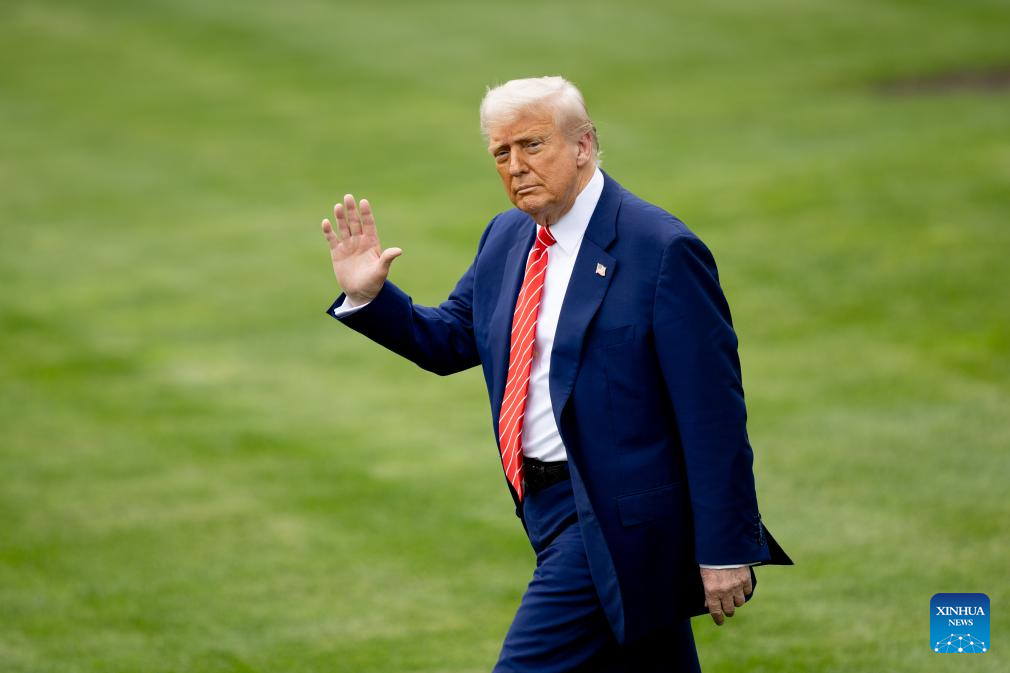 U.S. President Donald Trump walks to board Marine One at the White House in Washington, D.C., the United States, on May 30, 2025. U.S. Supreme Court on Friday lifted a federal district court order that kept humanitarian parole protections in place for more than 500,000 migrants from four countries of Cuba, Haiti, Nicaragua and Venezuela. The court has also allowed the Trump administration to revoke temporary legal status for about 350,000 Venezuelan migrants in another case. (Xinhua/Hu Yousong)