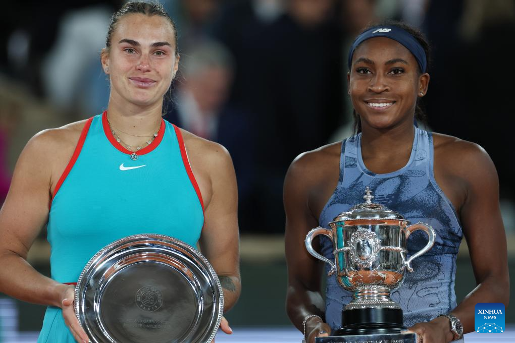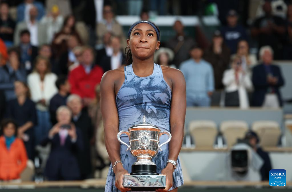 PARIS, June 7 (Xinhua) -- Second-seeded Coco Gauff of the United States beat world No. 1 Aryna Sabalenka of Belarus 6-7 (5), 6-2, 6-4 in the women's singles final of the French Open on Saturday to clinch her second Grand Slam title.