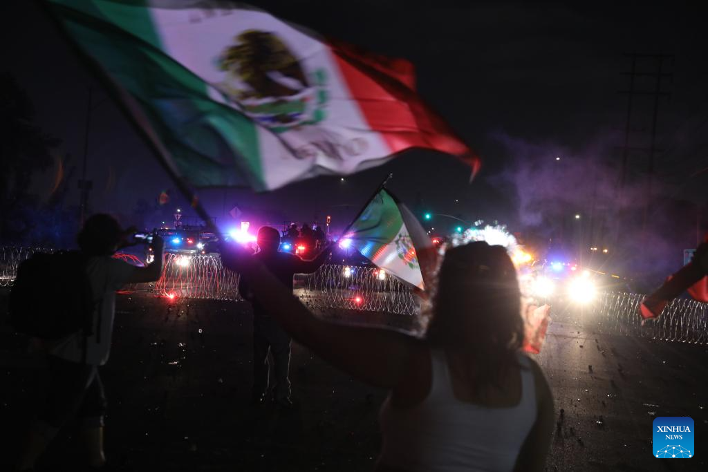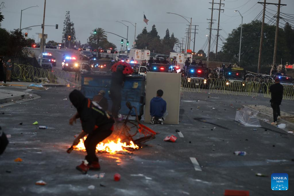 LOS ANGELES, June 7 (Xinhua) -- Several people were arrested on Saturday after protesters clashed with U.S. immigration agents for the second day in a row in Southern California.