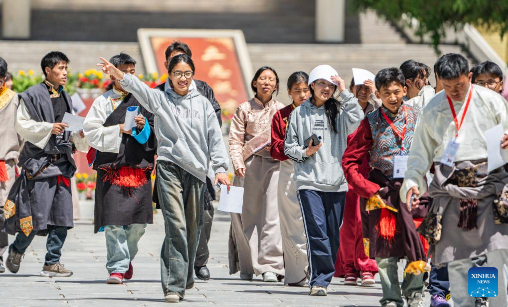 Students walk out of a national college entrance examination site in Lhasa, southwest China's Xizang Autonomous Region, June 9, 2025. China's national college entrance exam, also known as the gaokao, began on June 7 this year. The exam in some regions has ended on Monday. (Xinhua/Tenzin Nyida)