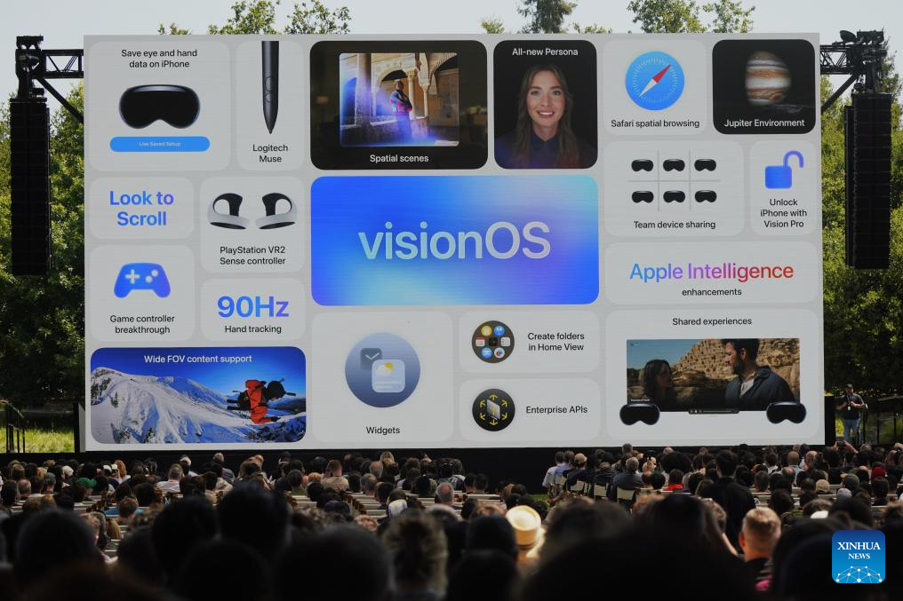 SAN FRANCISCO, June 9 (Xinhua) -- Apple announced on Monday a brand-new user interface called Liquid Glass, featuring transparent visual elements that give the software a more "glassy" look and feel.